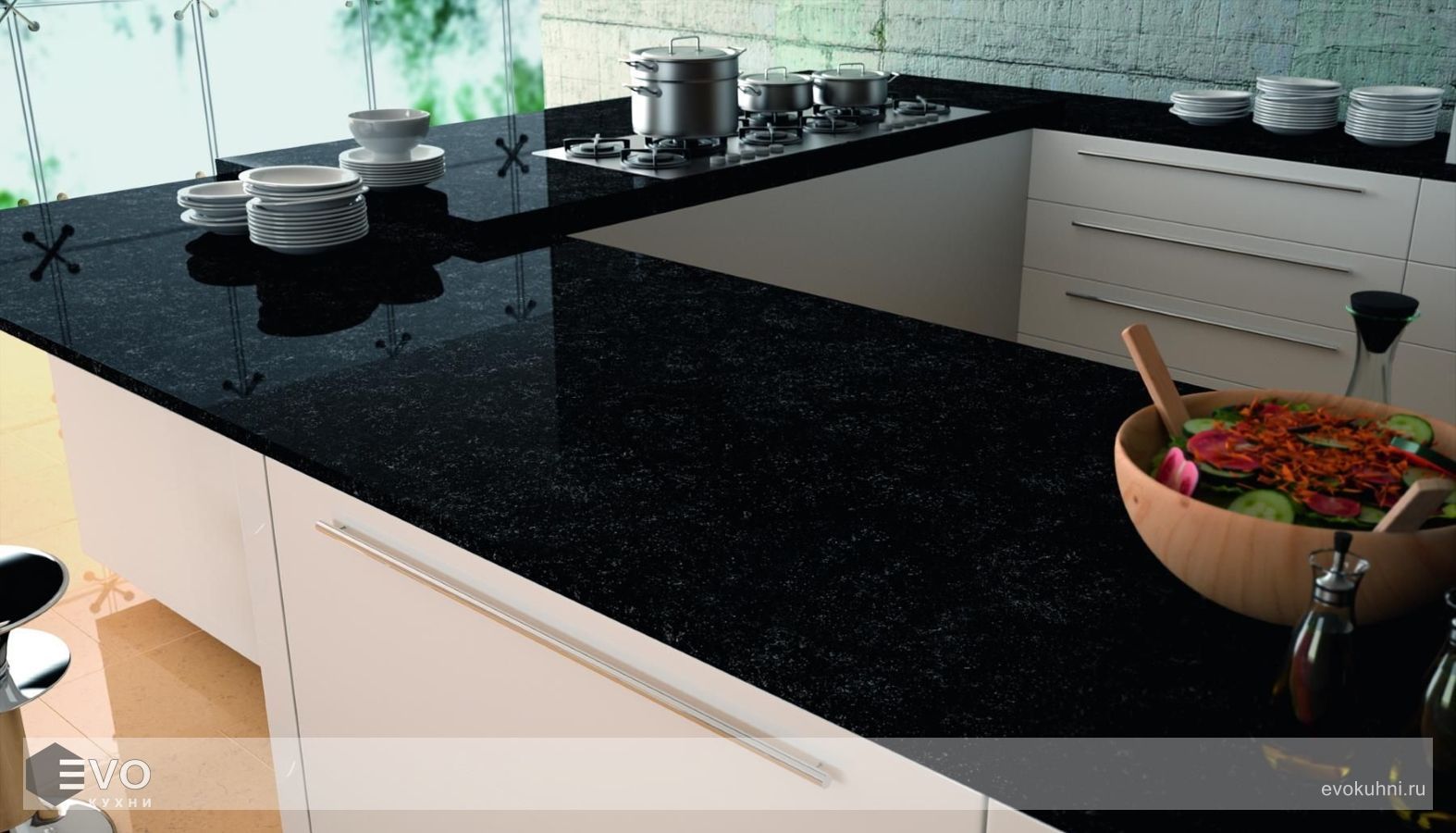 - Столешница для кухни из кварца будет очень удобна в использовании, потому что ее невозможно поцарапать ножом.