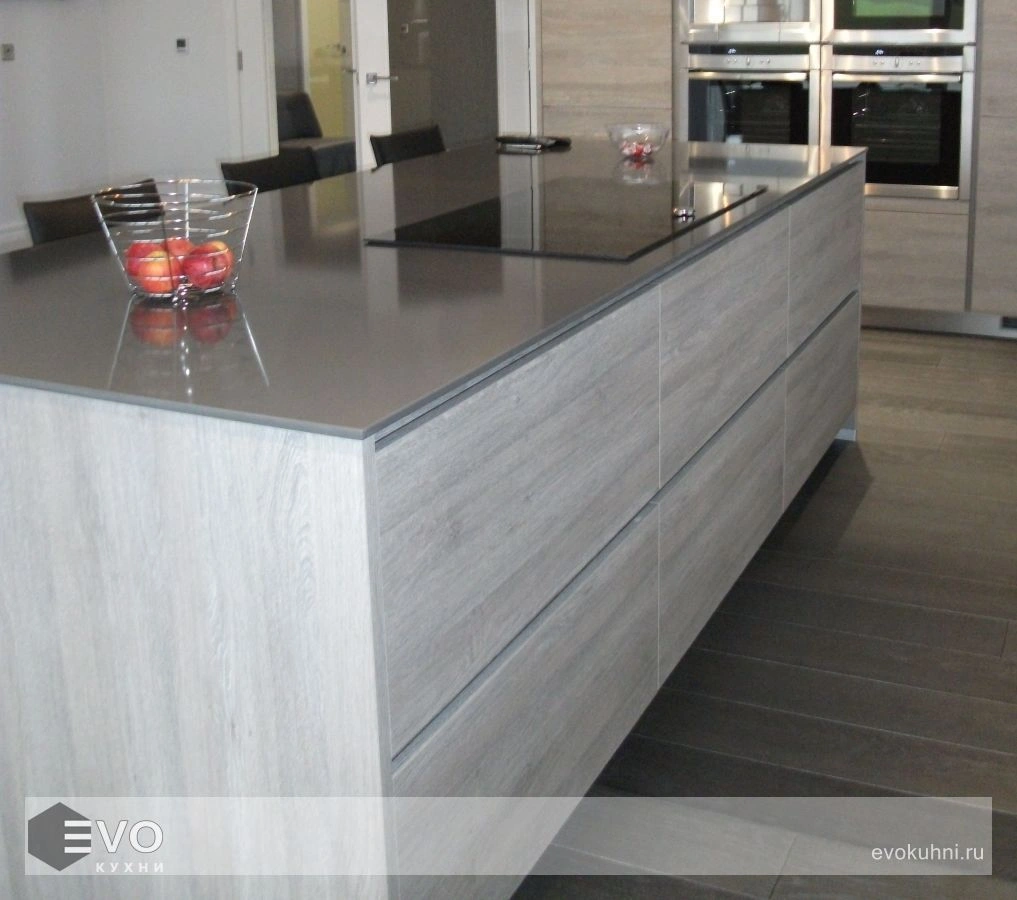 - Столешница для кухни из кварца будет очень удобна в использовании, потому что ее невозможно поцарапать ножом.