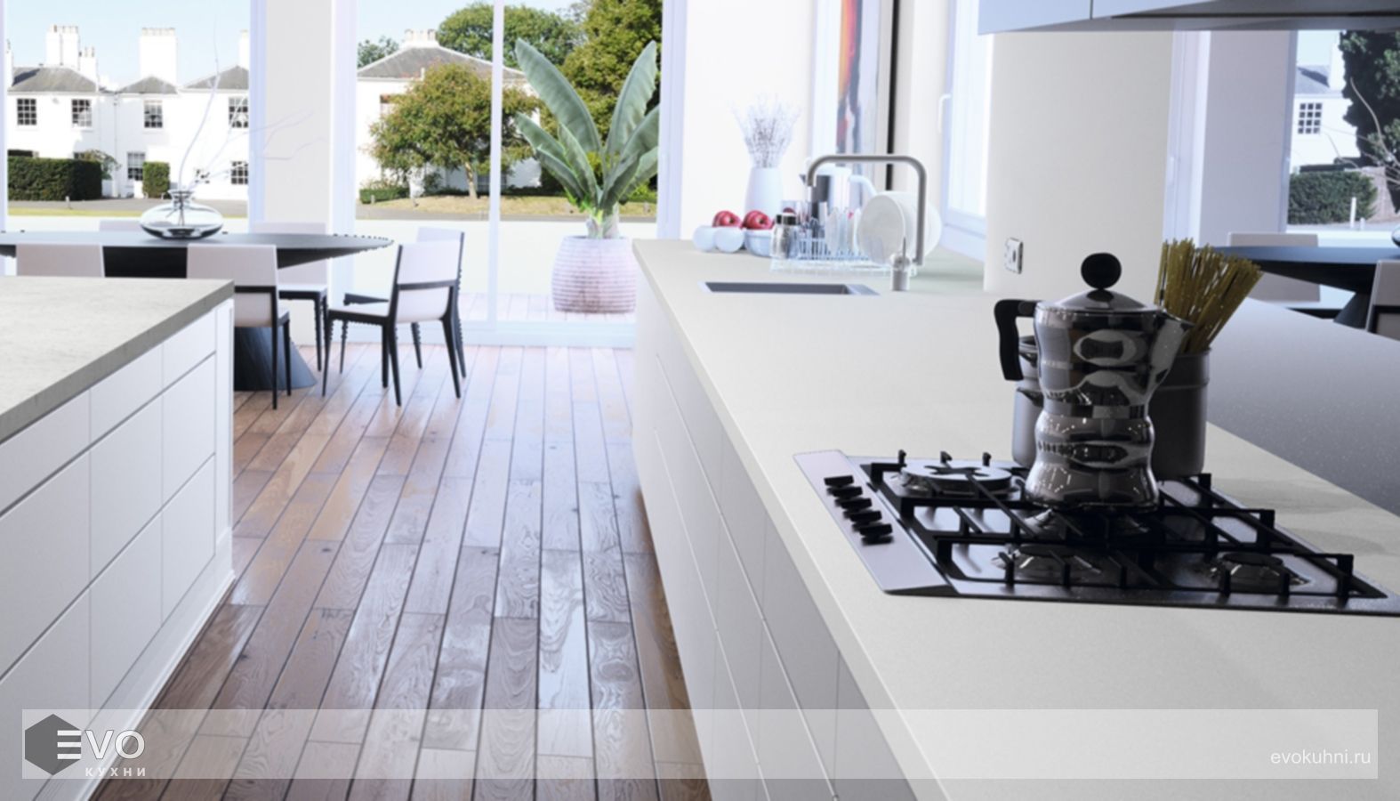 • Столешница для кухни из кварца будет очень удобна в использовании, потому что ее невозможно поцарапать ножом.