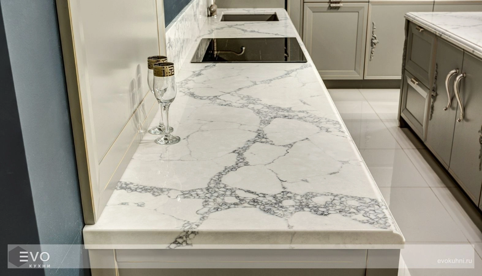 - Устойчивость к высоким температурам. Но, как и на другие поверхности из кварцевого камня, не следует ставить на него посуду, снятую с горячей плиты, желательно использовать теплоизолирующую подставку.