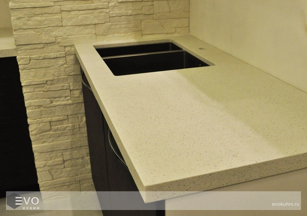 - Устойчивость к высоким температурам. Но, как и на другие поверхности из кварцевого камня, не следует ставить на него посуду, снятую с горячей плиты, желательно использовать теплоизолирующую подставку.