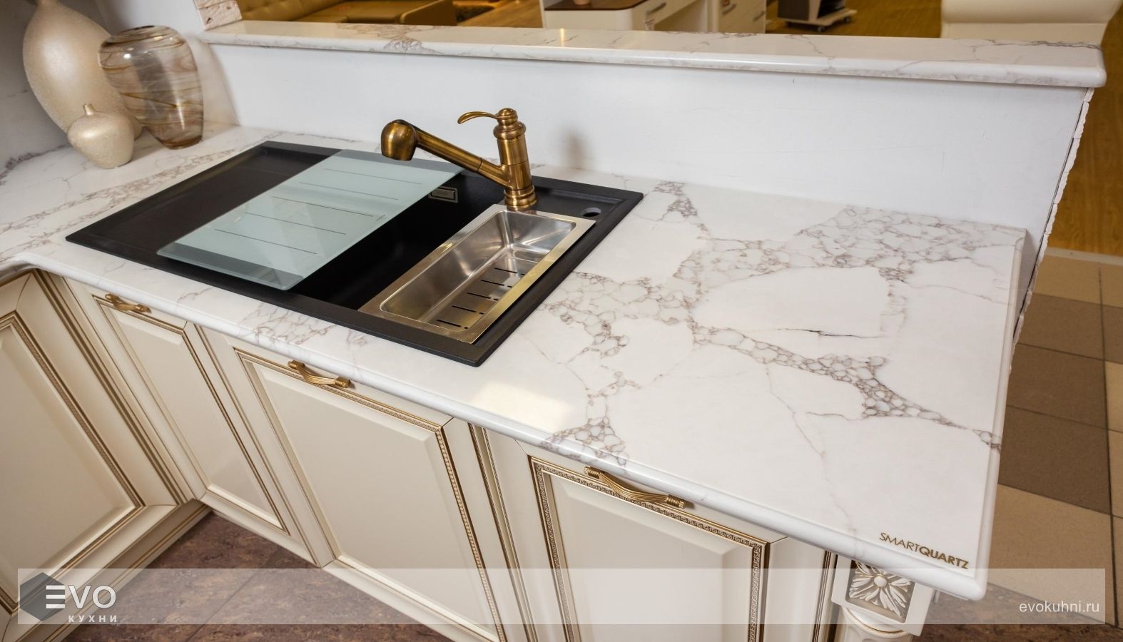 • Простота в уходе. SmartQuartz не пористый материал и поэтому устойчив к любым видам загрязнений. От кофе, чая, вина, лимонного или вишневого сока, ни от любых других продуктов, которыми вы обычно пользуетесь на кухне, пятен не останется.