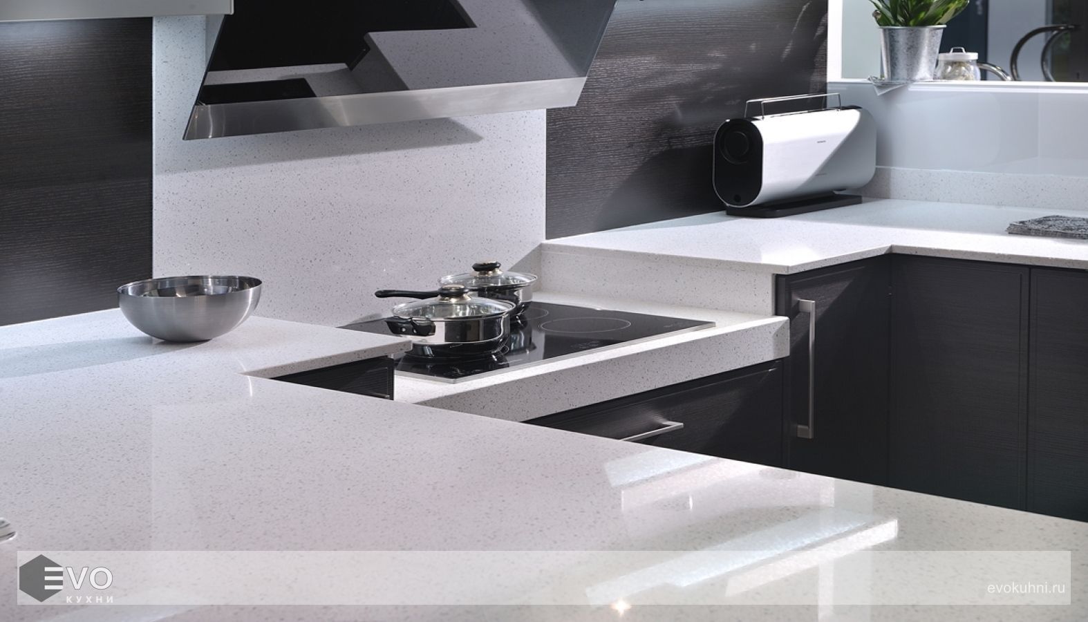 - Устойчивость к высоким температурам. Но, как и на другие поверхности из кварцевого камня, не следует ставить на него посуду, снятую с горячей плиты, желательно использовать теплоизолирующую подставку.