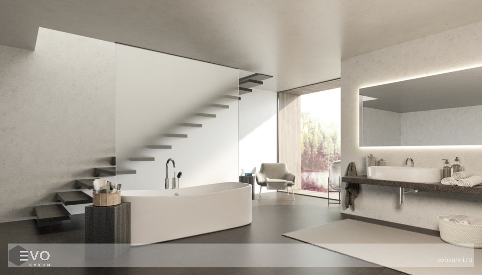 - Лестницы. Technistone производит плиты длиной до 3 метров, что позволяет использовать его при производстве лестниц или для их облицовки.
