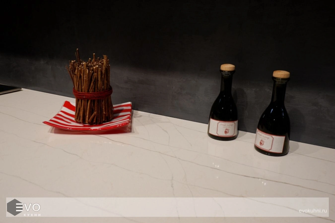 - Устойчивость к бытовым кислотам. Как уже было отмечено, кварцевый камень не имеет в своей структуре пор и трещин, что позволяет избегать негативного влияния на поверхность любых пищевых и химических продуктов. Благодаря этому никаких пятен и других загрязнений никогда не появится.