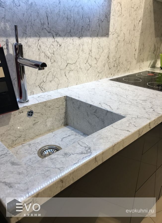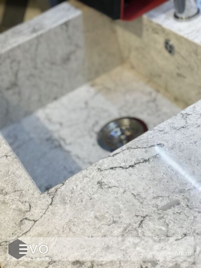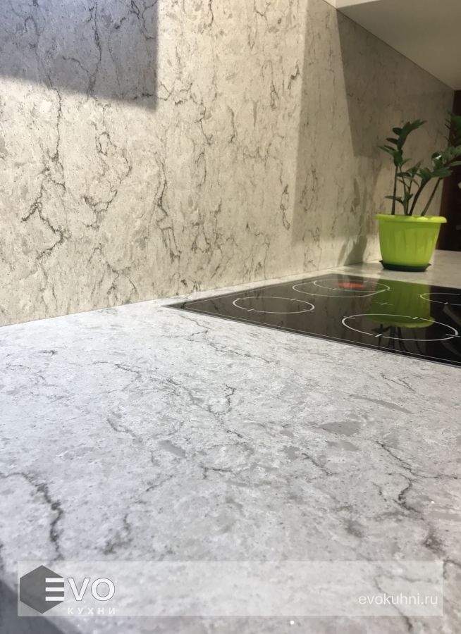 - Устойчивость к бытовым кислотам. Как уже было отмечено, кварцевый камень не имеет в своей структуре пор и трещин, что позволяет избегать негативного влияния на поверхность любых пищевых и химических продуктов. Благодаря этому никаких пятен и других загрязнений никогда не появится.