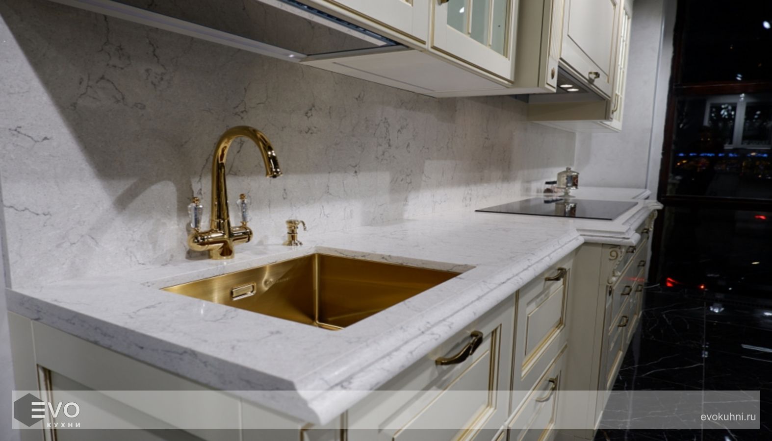 - Долговечность. У кварцевого камня полное отсутствие пор и внутреннего напряжения, за счет чего внутри не появляется ни одной трещины во время интенсивной обработки и установки. Это позволяет обеспечить долгое использование, что выгодно отличает его от более дорогих натуральных камней. Например, столешница из качественного агломерата Vicostone будет иметь новый вид на протяжении всего срока эксплуатации.