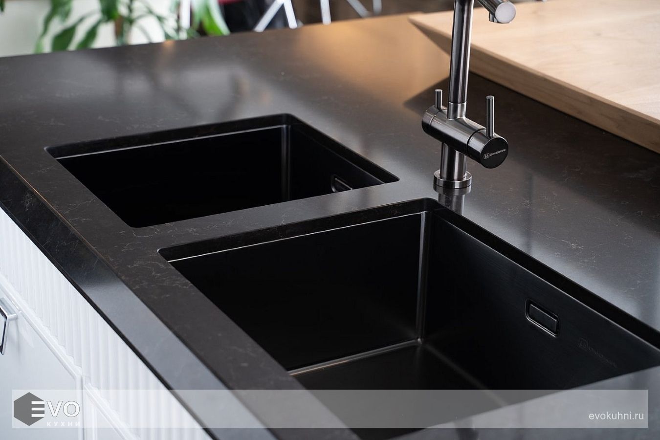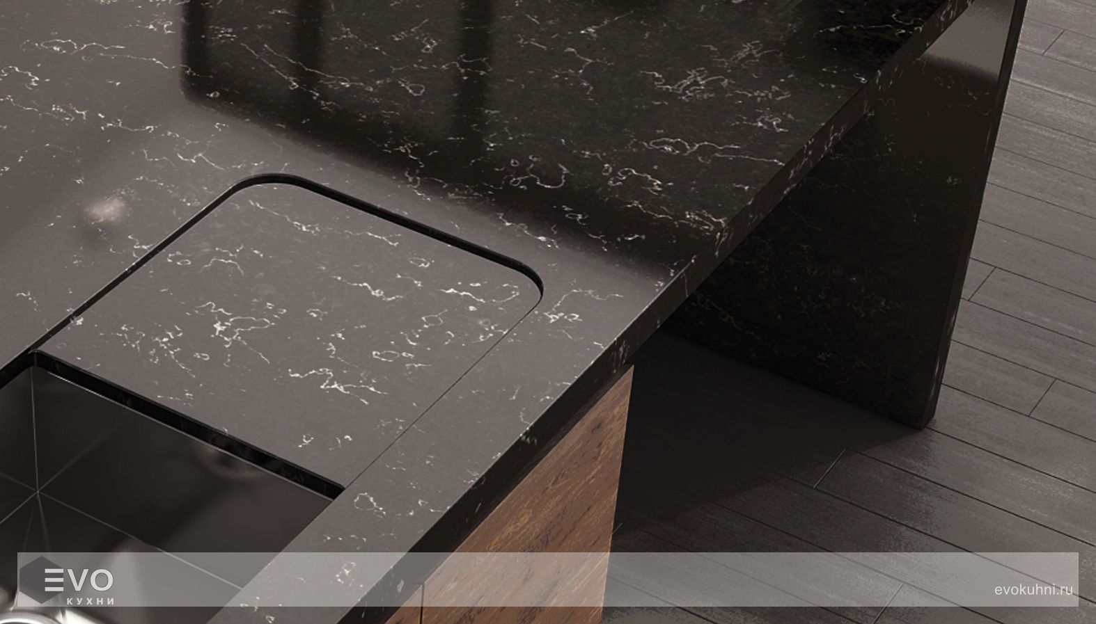 - Устойчивость к бытовым кислотам. Как уже было отмечено, кварцевый камень не имеет в своей структуре пор и трещин, что позволяет избегать негативного влияния на поверхность любых пищевых и химических продуктов. Благодаря этому никаких пятен и других загрязнений никогда не появится.