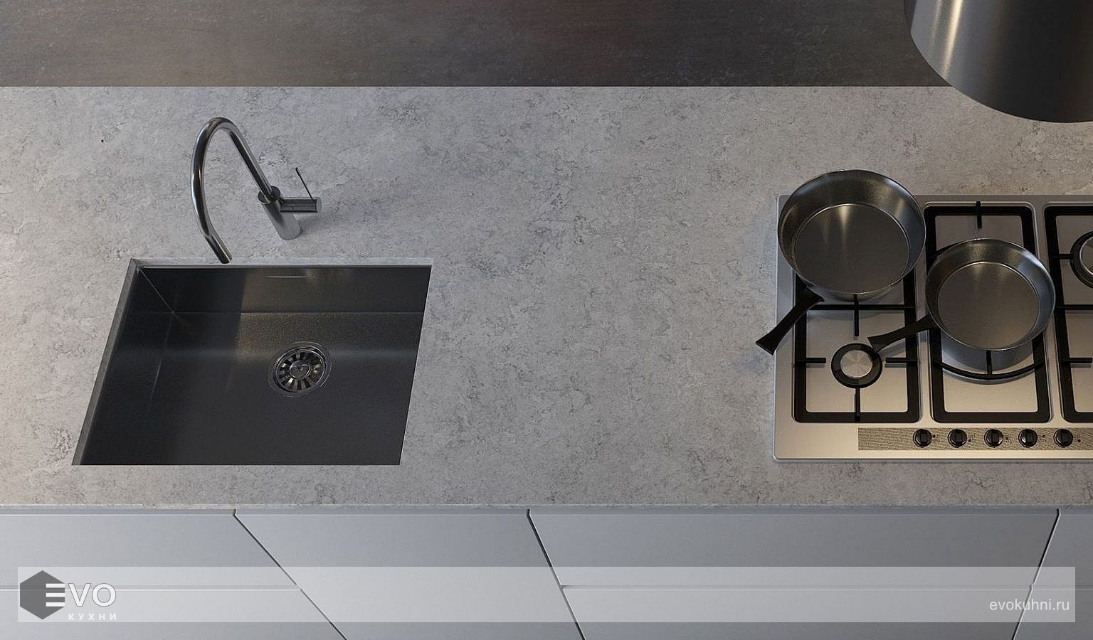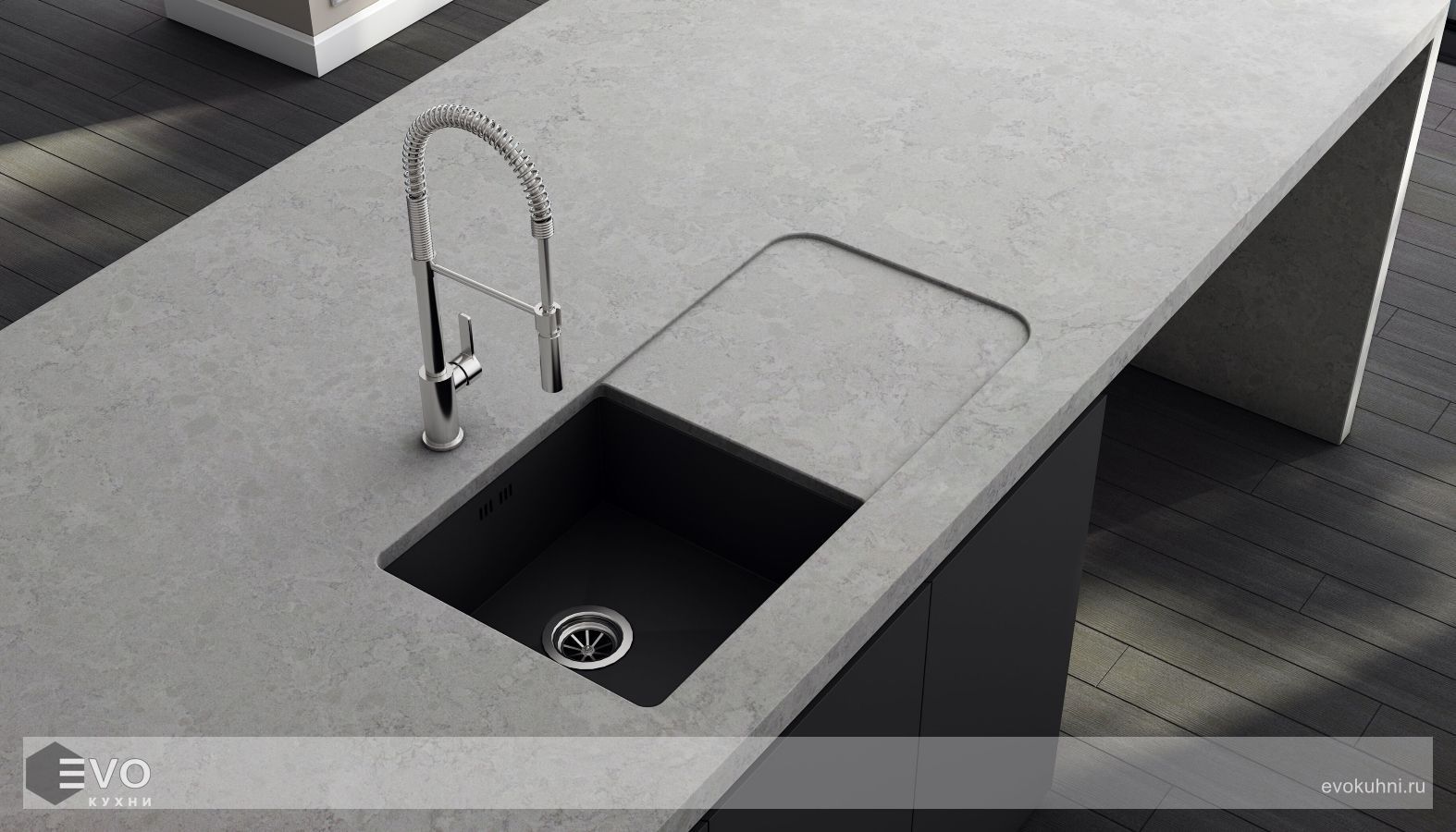 - Устойчивость к бытовым кислотам. Как уже было отмечено, кварцевый камень не имеет в своей структуре пор и трещин, что позволяет избегать негативного влияния на поверхность любых пищевых и химических продуктов. Благодаря этому никаких пятен и других загрязнений никогда не появится.