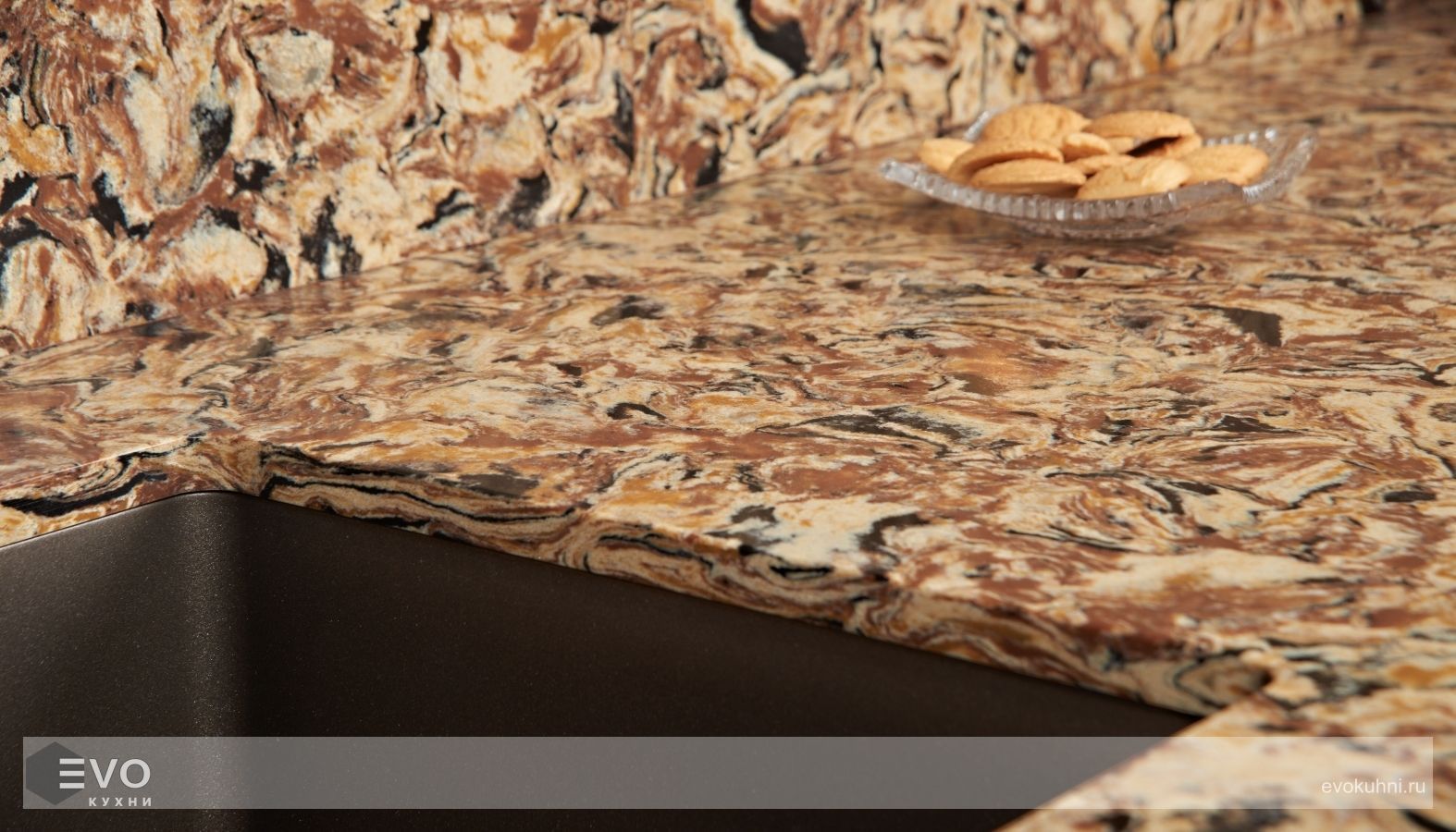 - Устойчивость к бытовым кислотам. Как уже было отмечено, кварцевый камень не имеет в своей структуре пор и трещин, что позволяет избегать негативного влияния на поверхность любых пищевых и химических продуктов. Благодаря этому никаких пятен и других загрязнений никогда не появится.