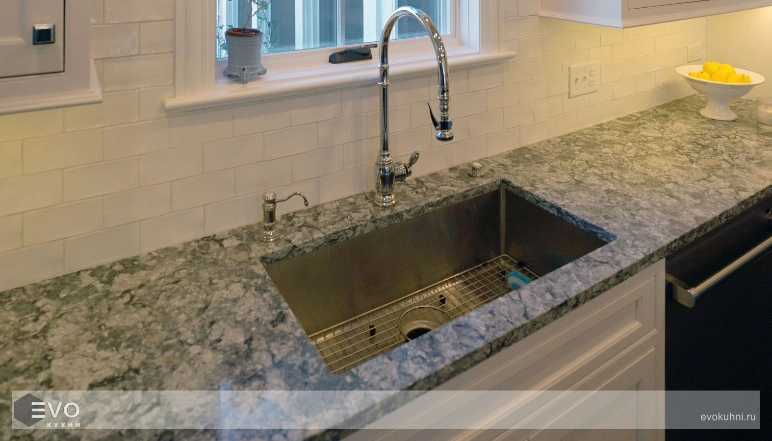 - Устойчивость к бытовым кислотам. Как уже было отмечено, кварцевый камень не имеет в своей структуре пор и трещин, что позволяет избегать негативного влияния на поверхность любых пищевых и химических продуктов. Благодаря этому никаких пятен и других загрязнений никогда не появится.