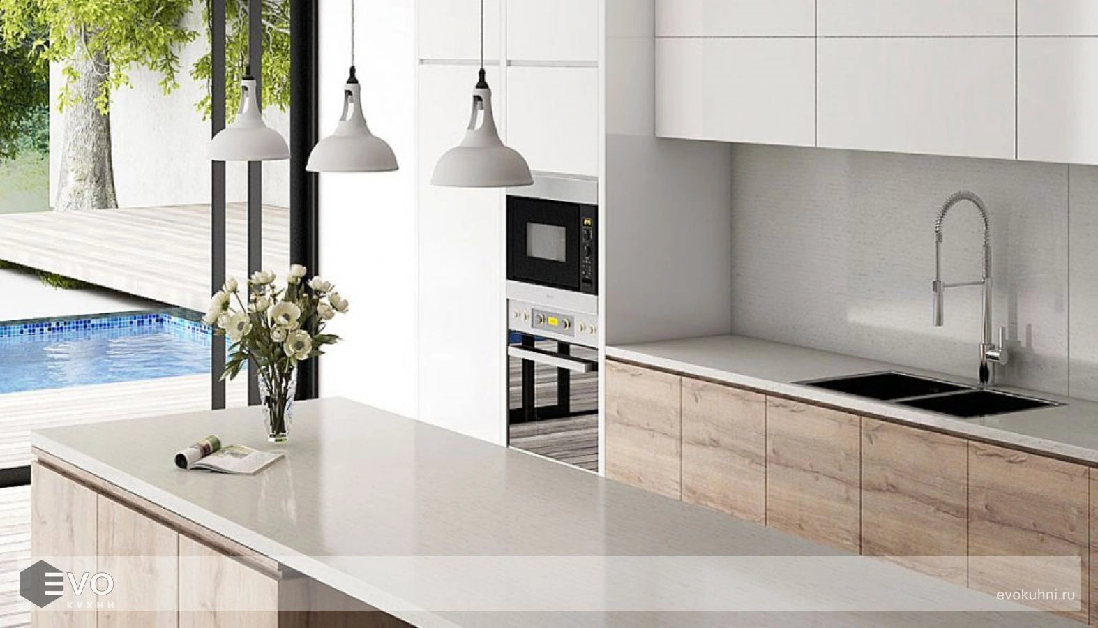- Устойчивость к бытовым кислотам. Как уже было отмечено, кварцевый камень не имеет в своей структуре пор и трещин, что позволяет избегать негативного влияния на поверхность любых пищевых и химических продуктов. Благодаря этому никаких пятен и других загрязнений никогда не появится.