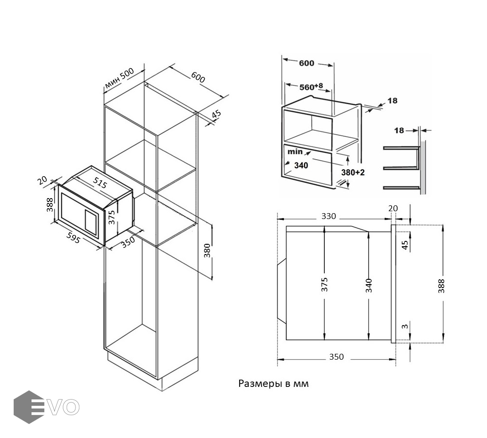 • Габариты встраивания (ВхШхГ), мм: 380x600x500