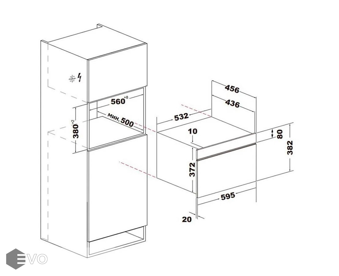 Размеры встраивания (ВхШхГ), мм: 380x560x500