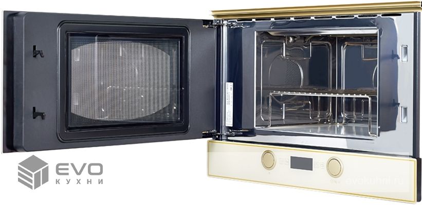 Встраиваемая микроволновая печь Kuppersberg RMW 393 С Bronze в беспроигрышном бежевом цвете и с фурнитурой под бронзу. Конструкция с электронным управлением имеет четырнадцать режимов нагрева, а также функцию запоминания для трех из них. В комплектацию входит специальная решетка для гриля, расширяющая функциональные возможности печи. Безопасность обеспечивается встроенной функцией защиты от детей. Микроволновые излучения происходят из под дна камеры, обеспечивая равномерный нагрев пищи внутри камеры.