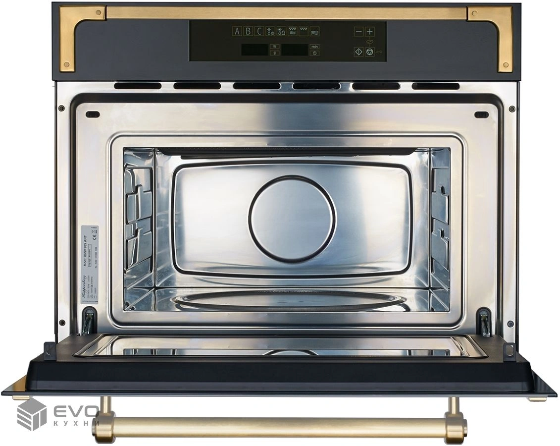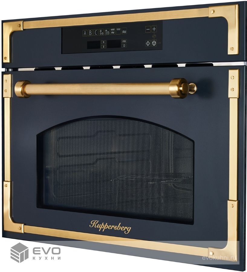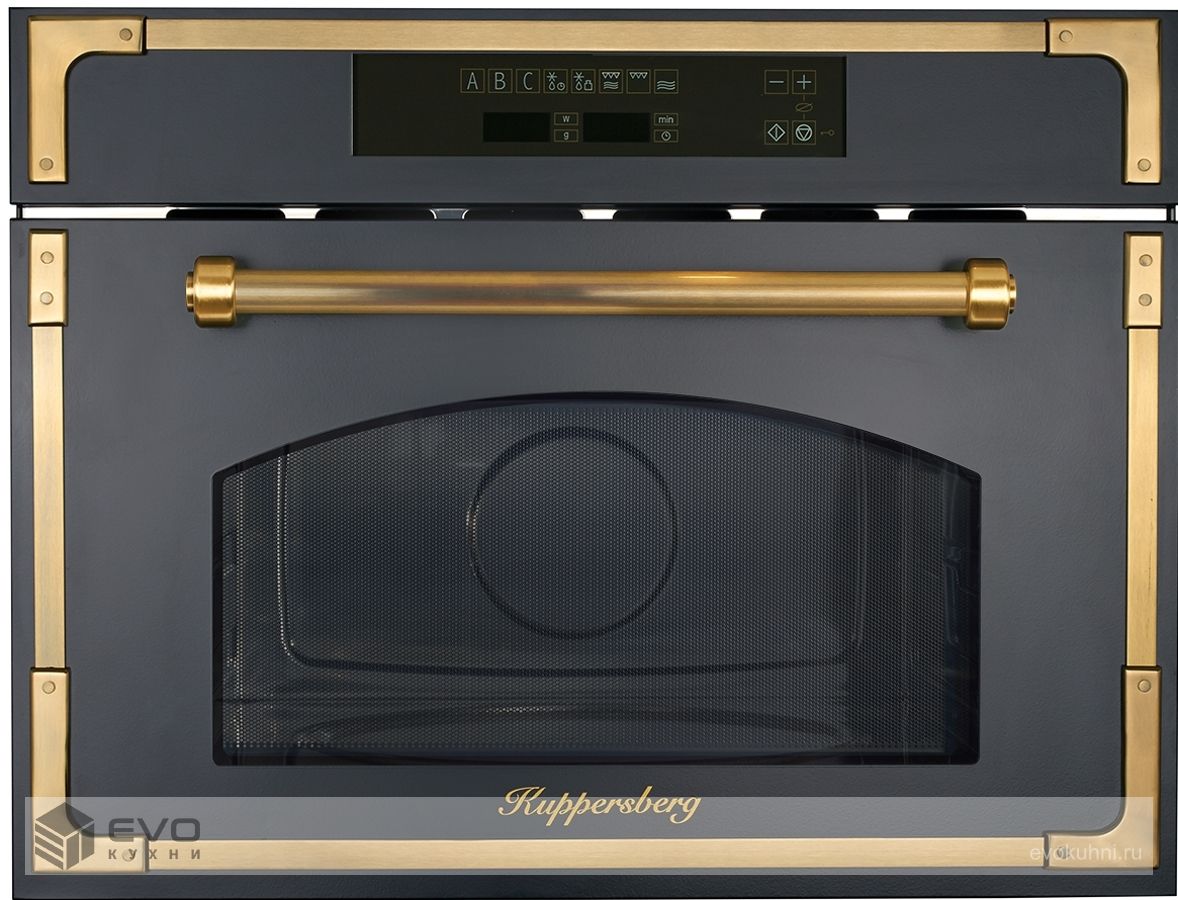 Микроволновая печь Kuppersberg RMW 969 ANT с бронзовой отделкой гармонично впишется в интерьер кухни в классическом или кантри-стиле. Данная модель способна работать в 12 различных режимах приготовления. Сенсорная панель управления обеспечивает удобство и простоту в эксплуатации. Изюминка модели - откидная дверца с удобной ручкой. Фурнитура микроволновой печи из металла ручной работы. Индивидуальный подход к изготовлению каждого элемента из металла, гарантирует надежность и долгий срок службы.