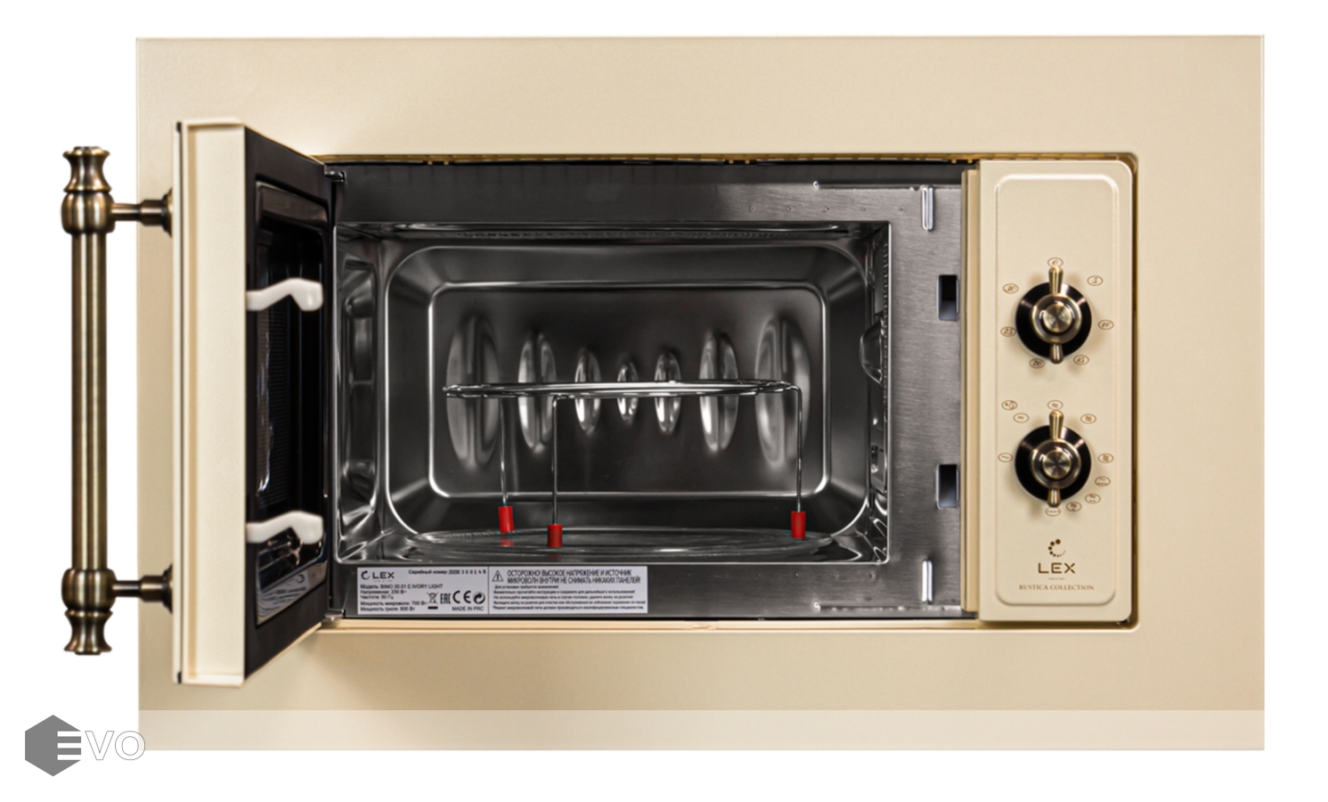 Микроволновая печь LEX BIMO 20.01 C IVORY – встраиваемая микроволновая печь с грилем, которая позволит разморозить продукты, разогреть или приготовить блюдо. Декор стилизован под состаренную временем латунь – это функциональная, надежная и красивая бытовая техника для кухни.