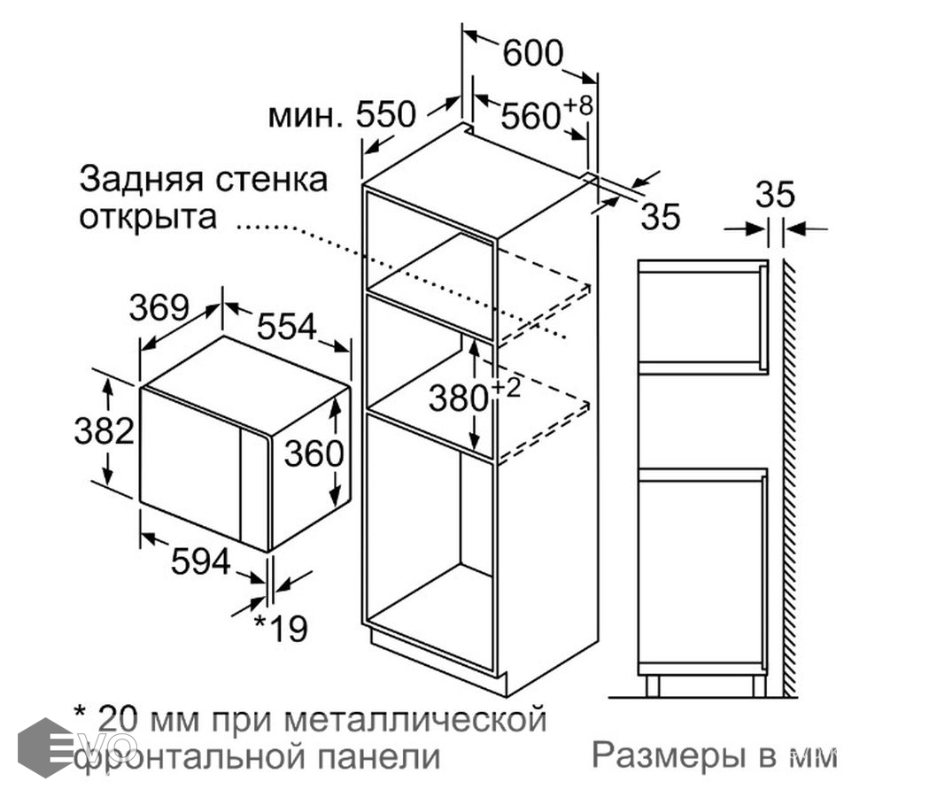 | Размеры встраивания (ВхШхГ), мм: | 382х568х550 |
