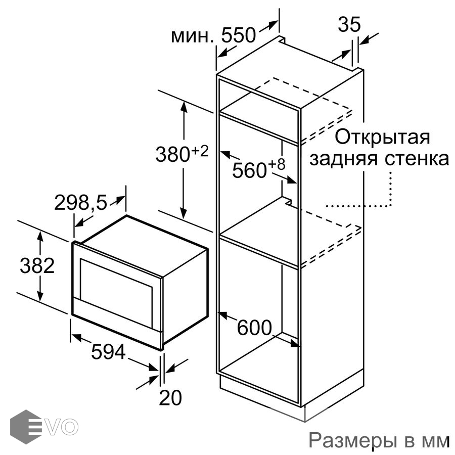 | Размеры встраивания (ВхШхГ), мм: | 362-365х560-568х300 |