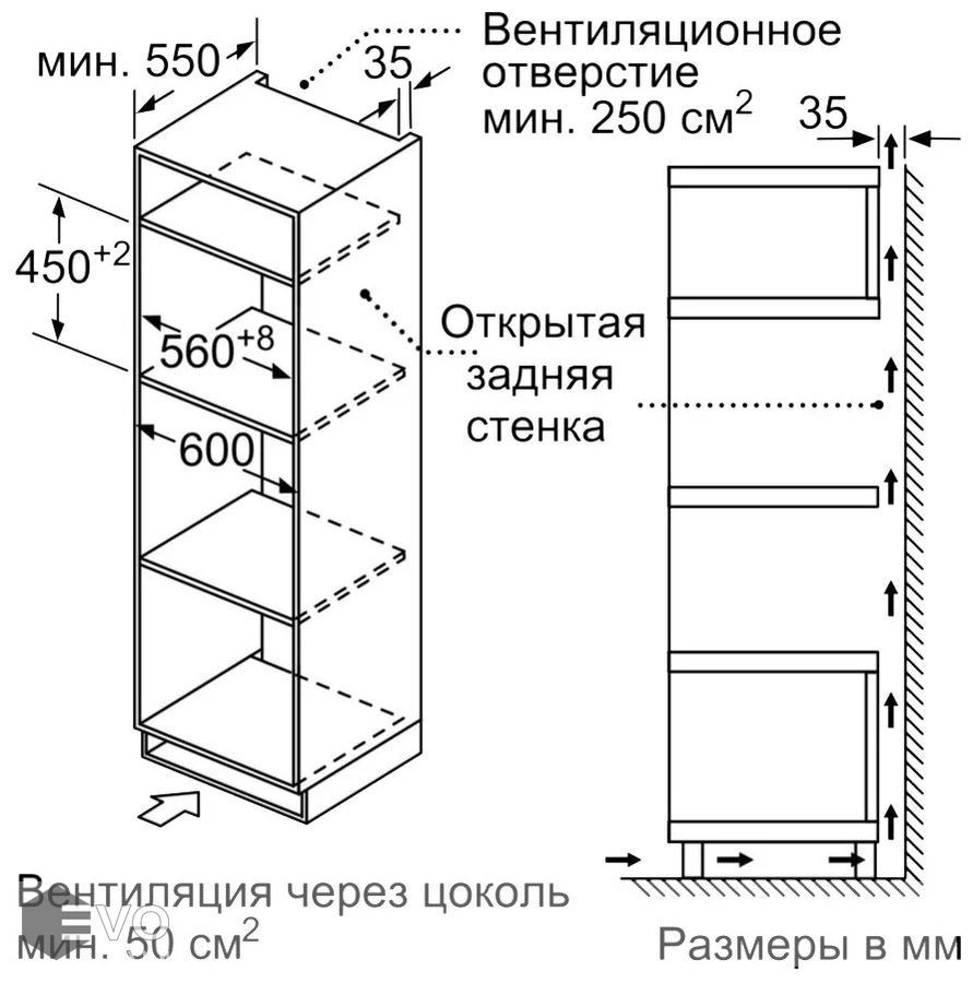 | Размеры встраивания (ВхШхГ), мм: | 452х568х550 |