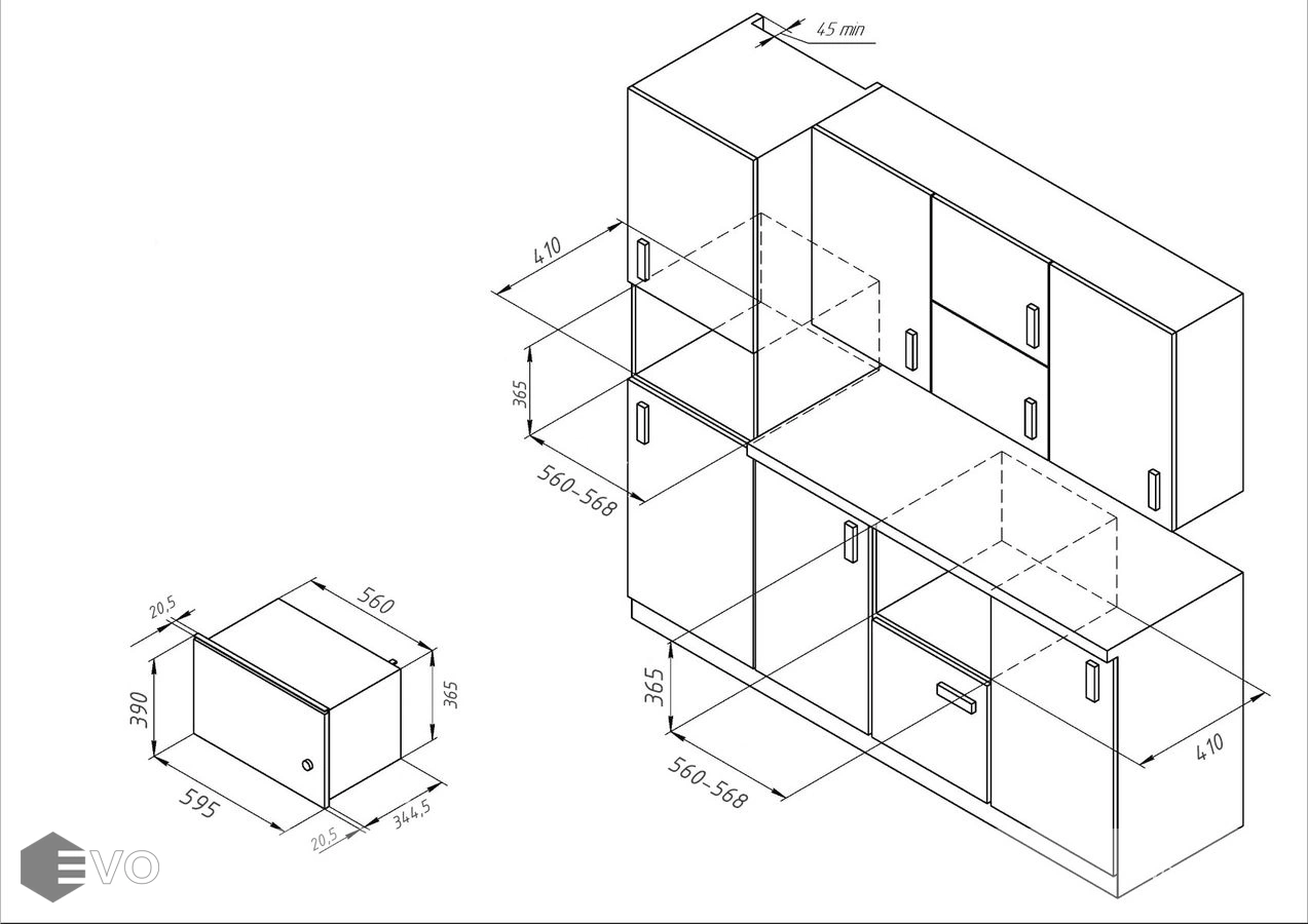 Размеры встраивания (ВхШхГ), мм: 365х560-568х410