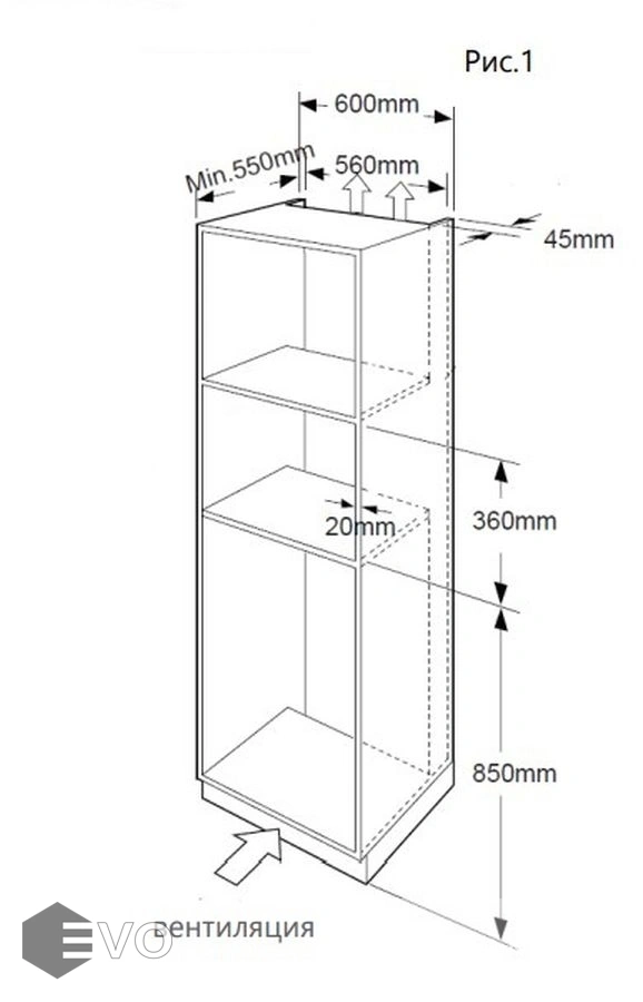 | Размеры встраивания (ВхШхГ), мм: | 360х560х550 |