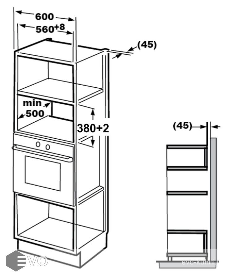 | Размеры встраивания (ВхШхГ), мм: | 380х560х500 |