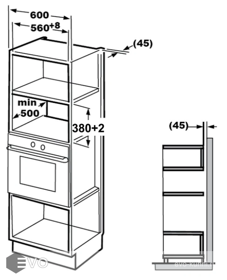 Размеры встраивания (ВхШхГ), мм: | 380х560х500 |