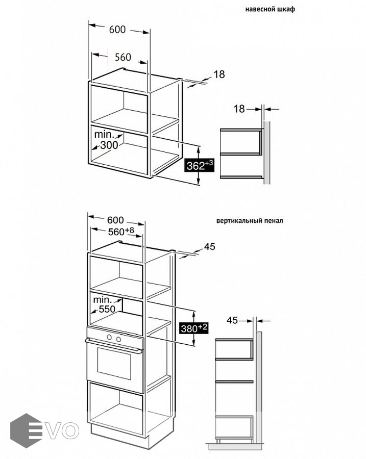 Размеры встраивания (ВхШхГ), мм: 362-365x560x330