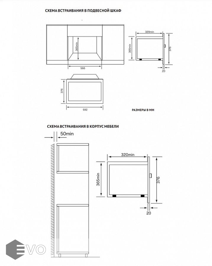 | Размеры встраивания (ВхШхГ), мм: | 365x566x320 |