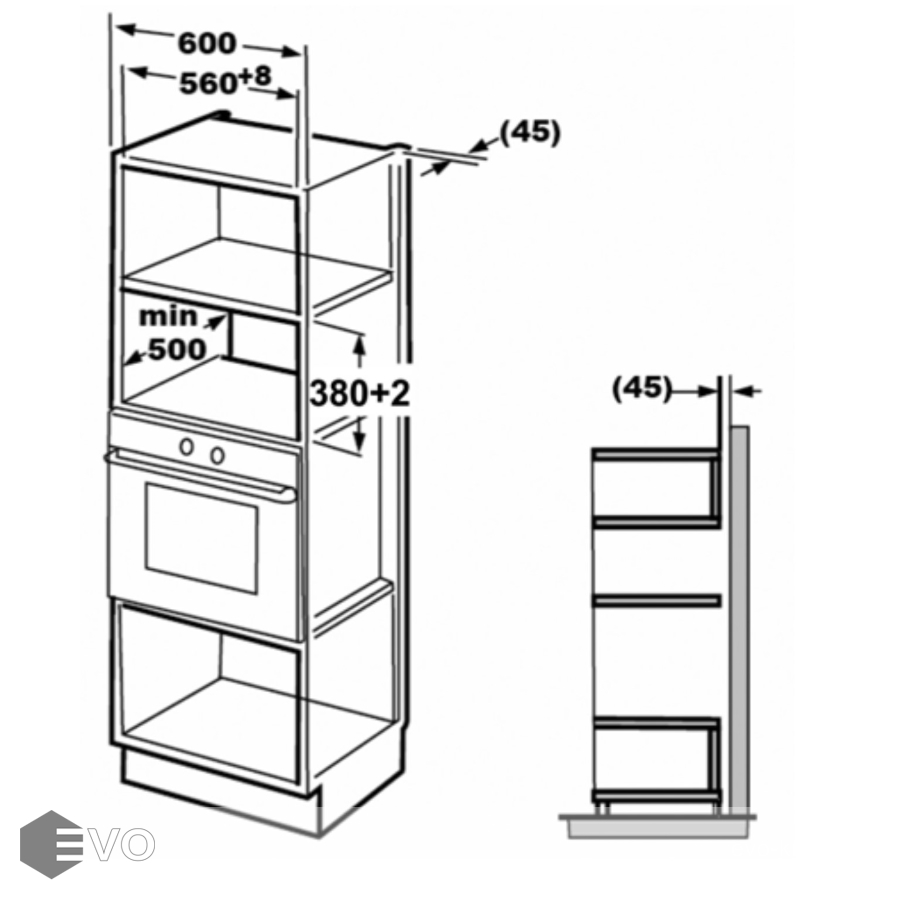 Размеры встраивания (ВхШхГ), мм: 382х568х500
