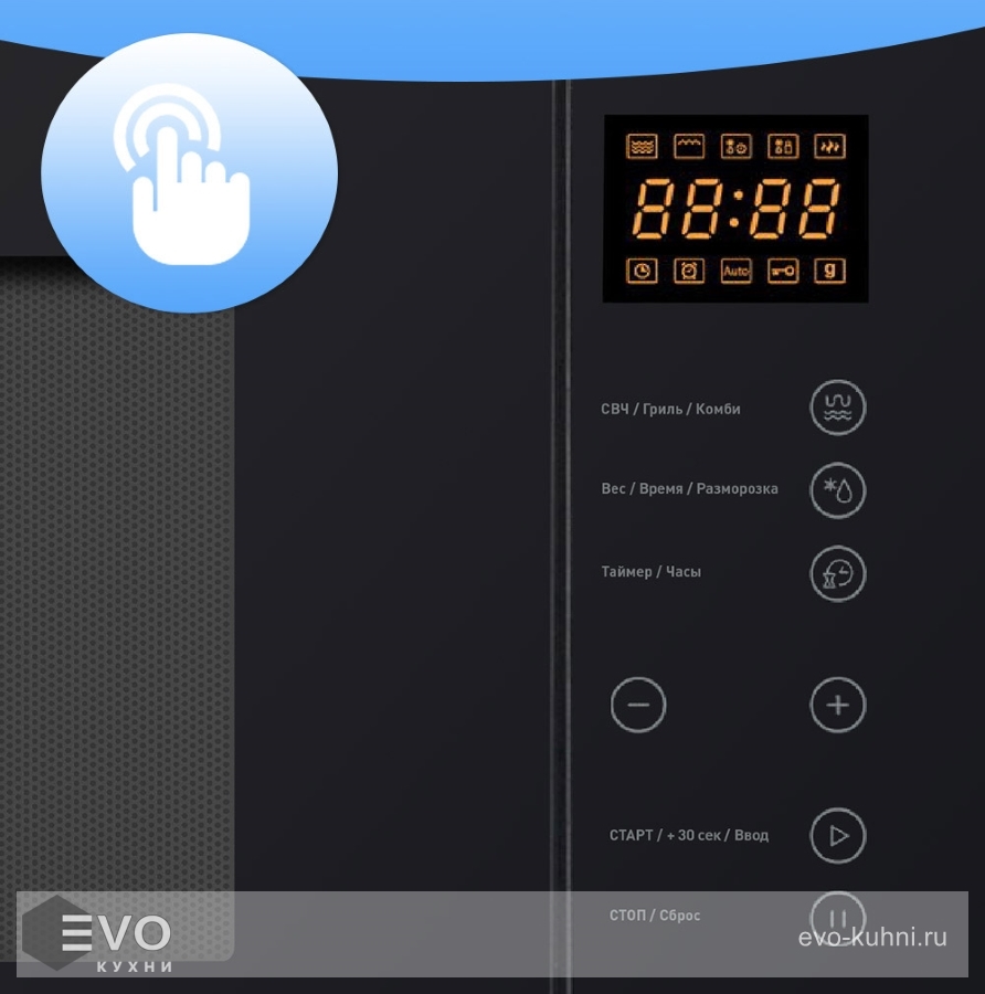 Полезный объем для готовки — 25 л. Для установки и прогрева посуды используется классическое вращающееся блюдо. Понятное электронное управление не вызовет трудностей ни у кого из вашей семьи. Для изменения настроек или выбора программ используются следующие переключатели: сенсорные.