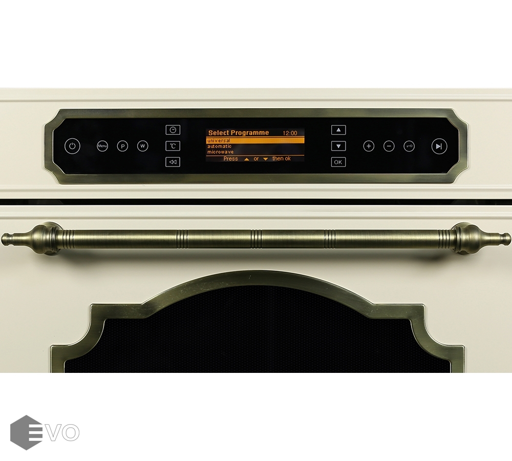 Эта микроволновая печь оснащена автоматическими программами приготовления, что открывает перед вами массу возможностей. Конвекция обеспечивает равномерное приготовление блюд. Вся информация о настройках и программах отображается на дисплее, а управление осуществляется с помощью сенсорных переключателей.