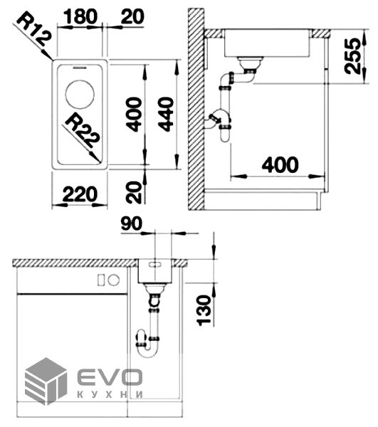 Сверху на столешницу | Мойка устанавливается сверху в предварительно подготовленный вырез в столешнице. |