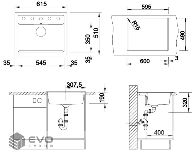 Сверху на столешницу | Мойка устанавливается сверху в предварительно подготовленный вырез в столешнице. |
