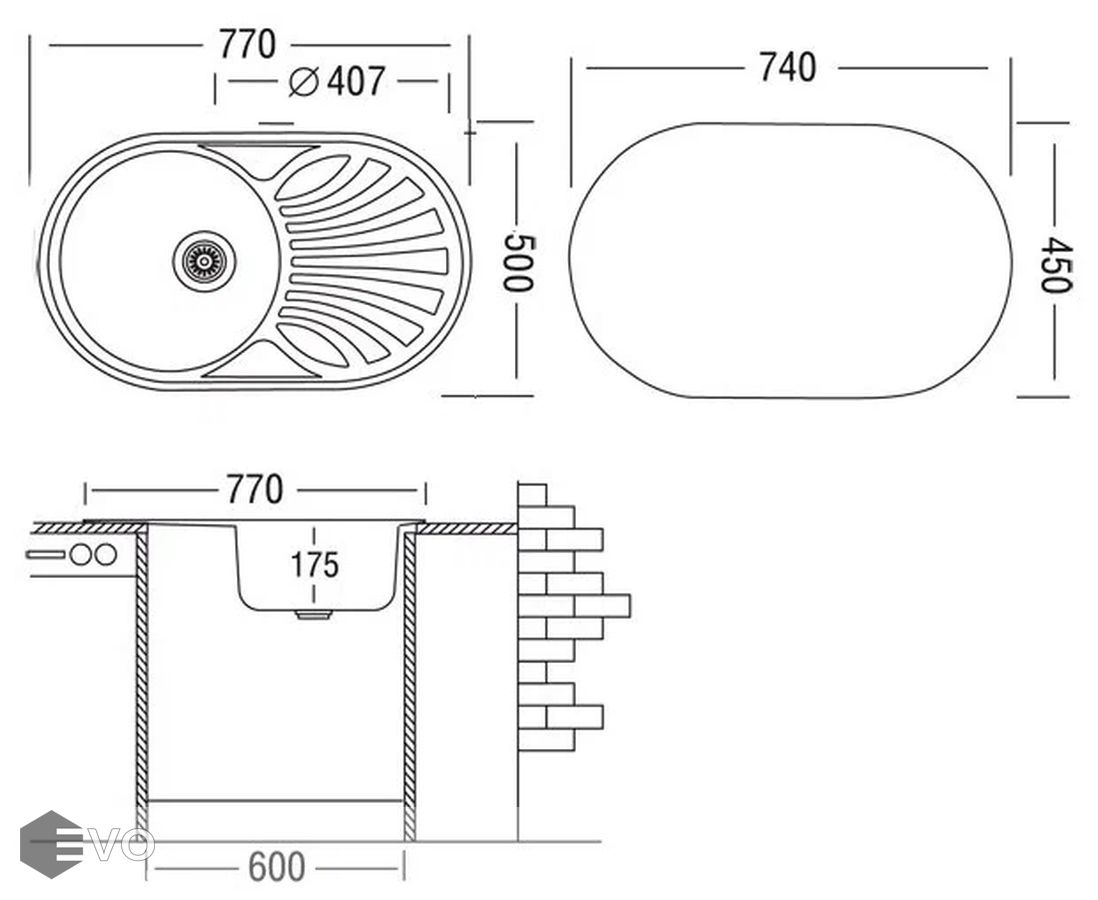 - Форма мойки: овальная