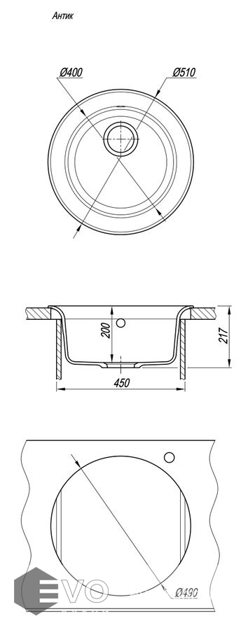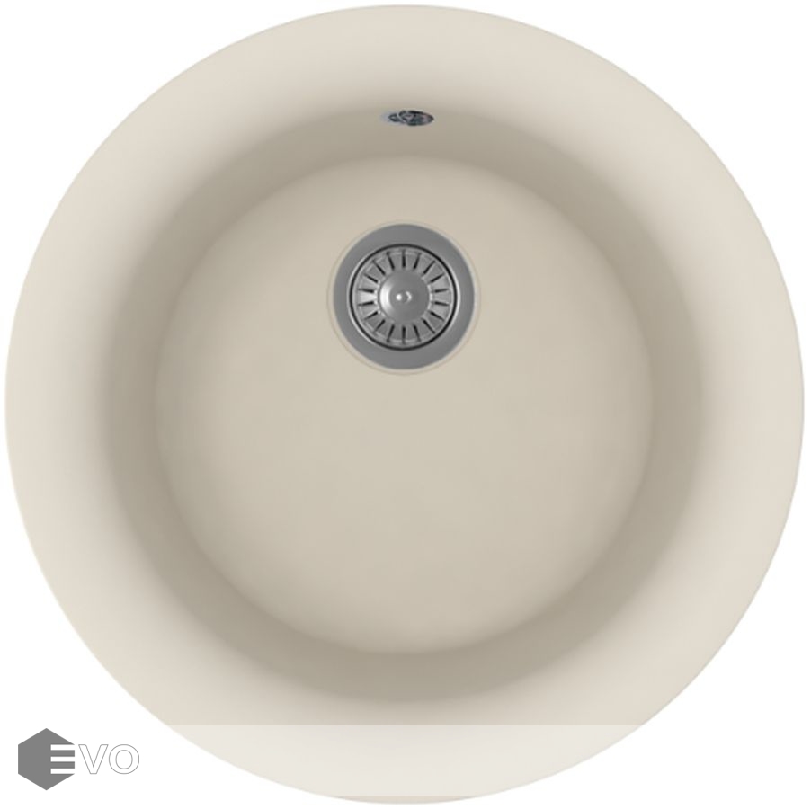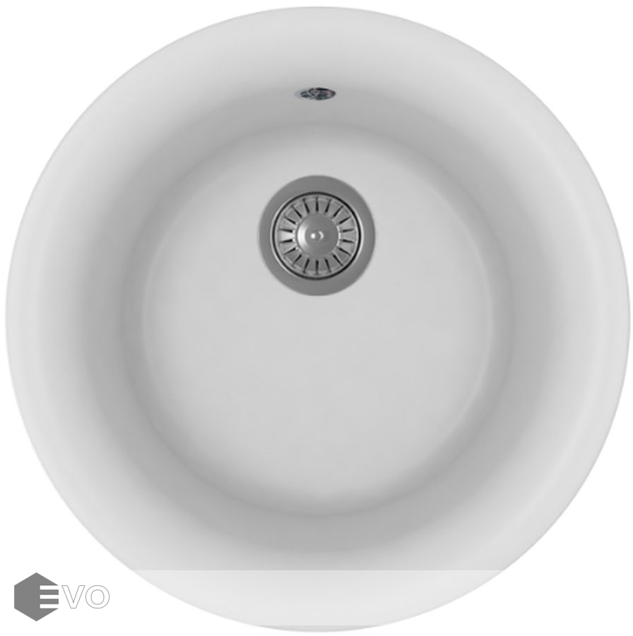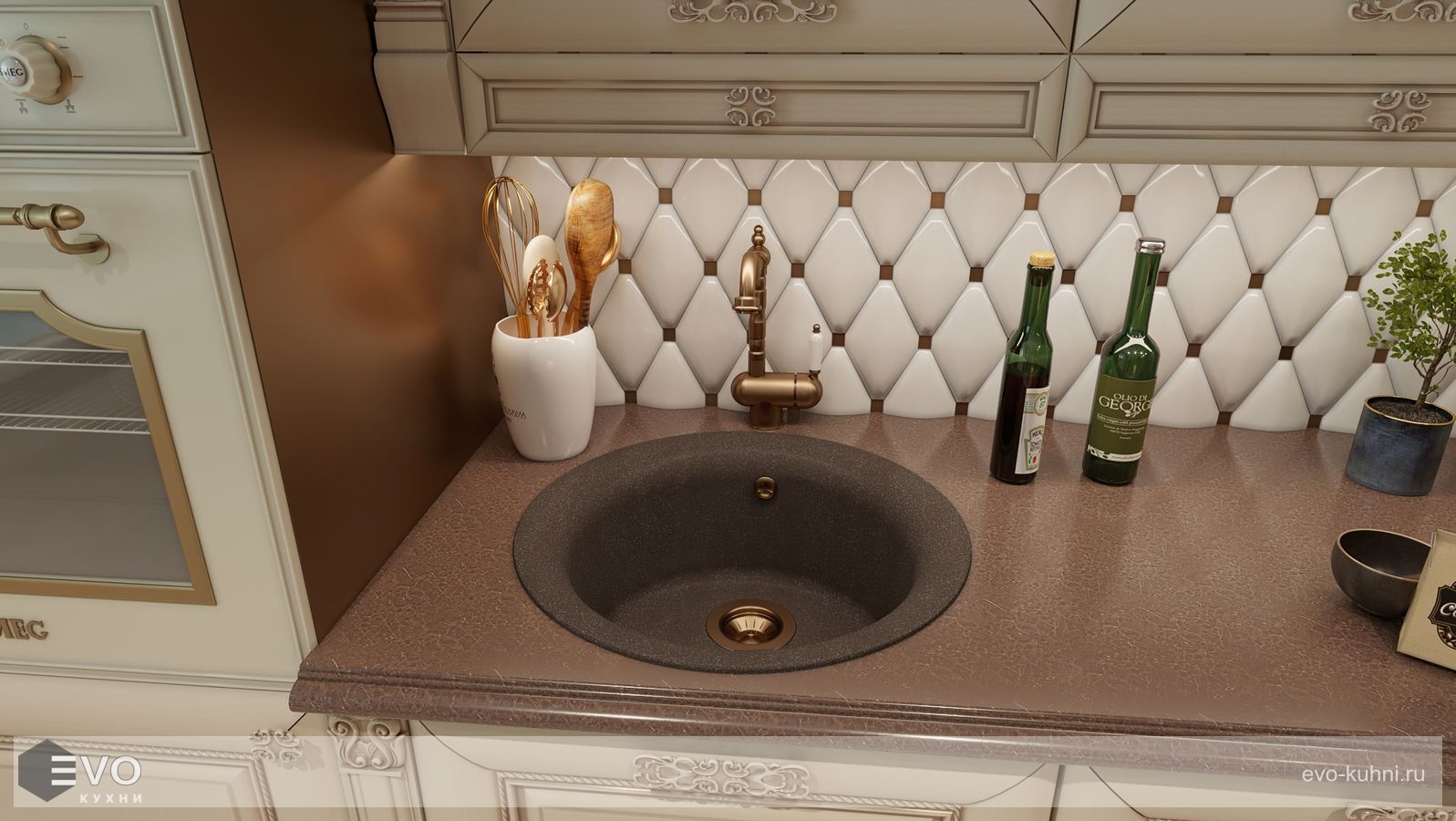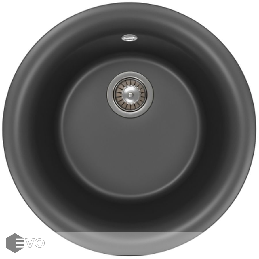 Круглая мойка с большой чашей для кухонного шкафа 45 см, напоминающая форму кувшина. Установка акcессуаров производится в столешницу.