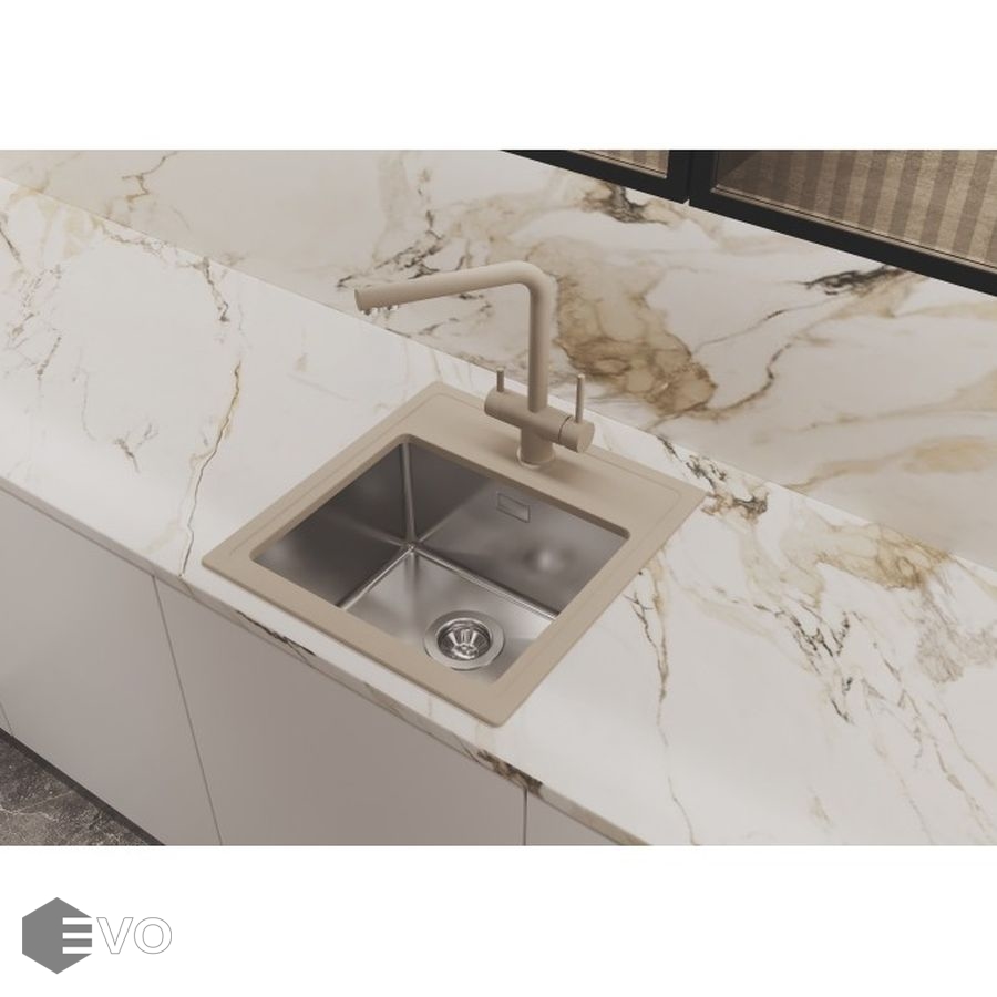Мойка Комби 480 - это новое решение для кухонного гарнитура, отлично впишется в любой интерьер. В дизайне мойки использовано необычное сочетание камня и нержавеющей стали.