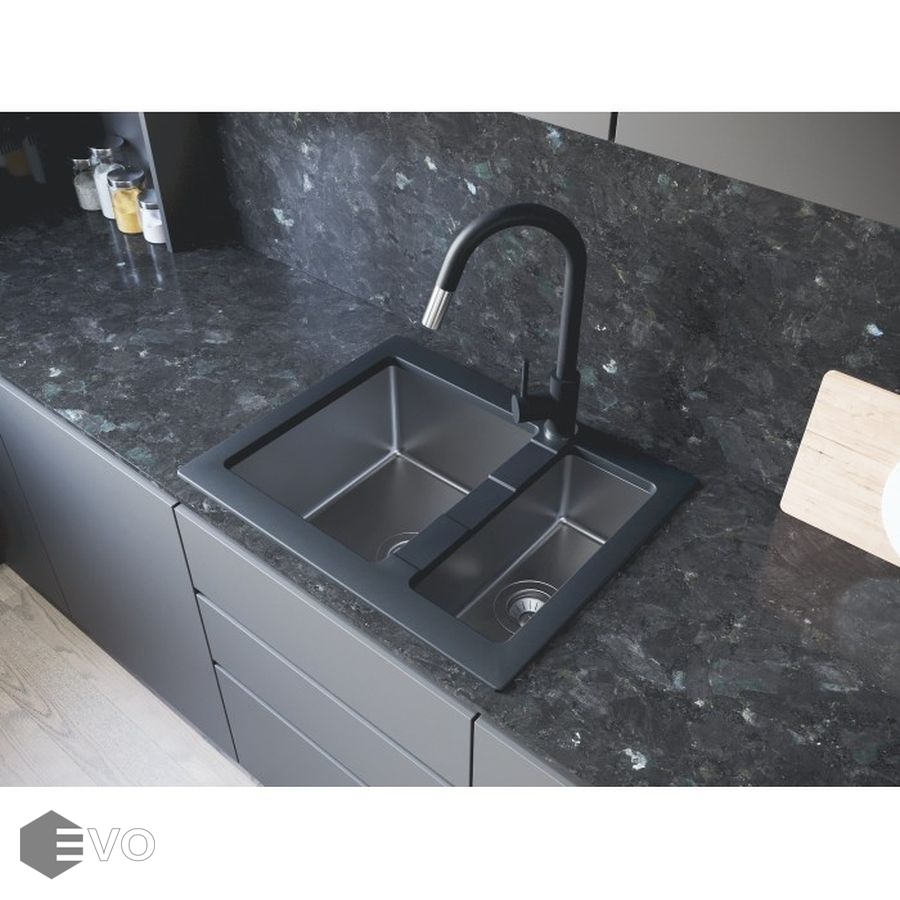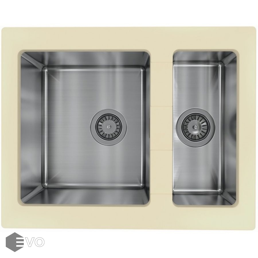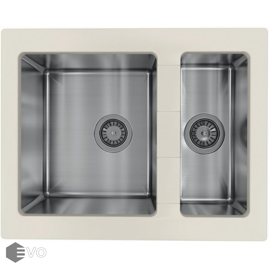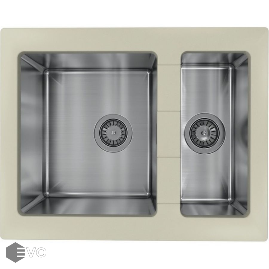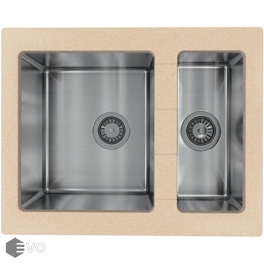 Комбинированная мойка из искусственного камня и стали Florentina Комби 640К. Чаши выполнены из нержавеющей стали марки AISI 304, толщина металла 1 мм, материал столешницы искусственный камень (композитный материал).