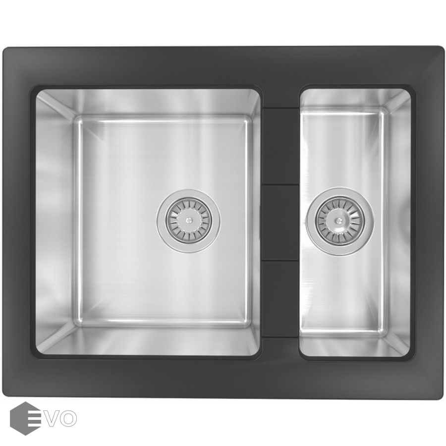 Комплектация: отводная арматура для двух чаш с выпуском, перелив, крепежи, шаблон для выреза, гарантийный талон.