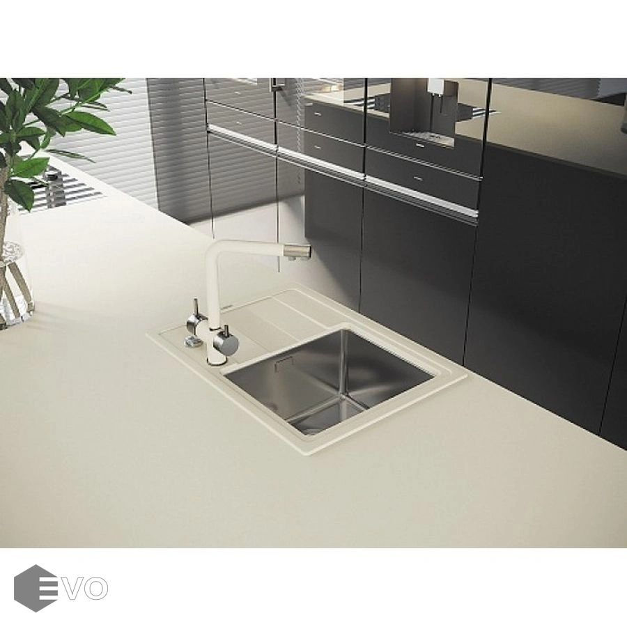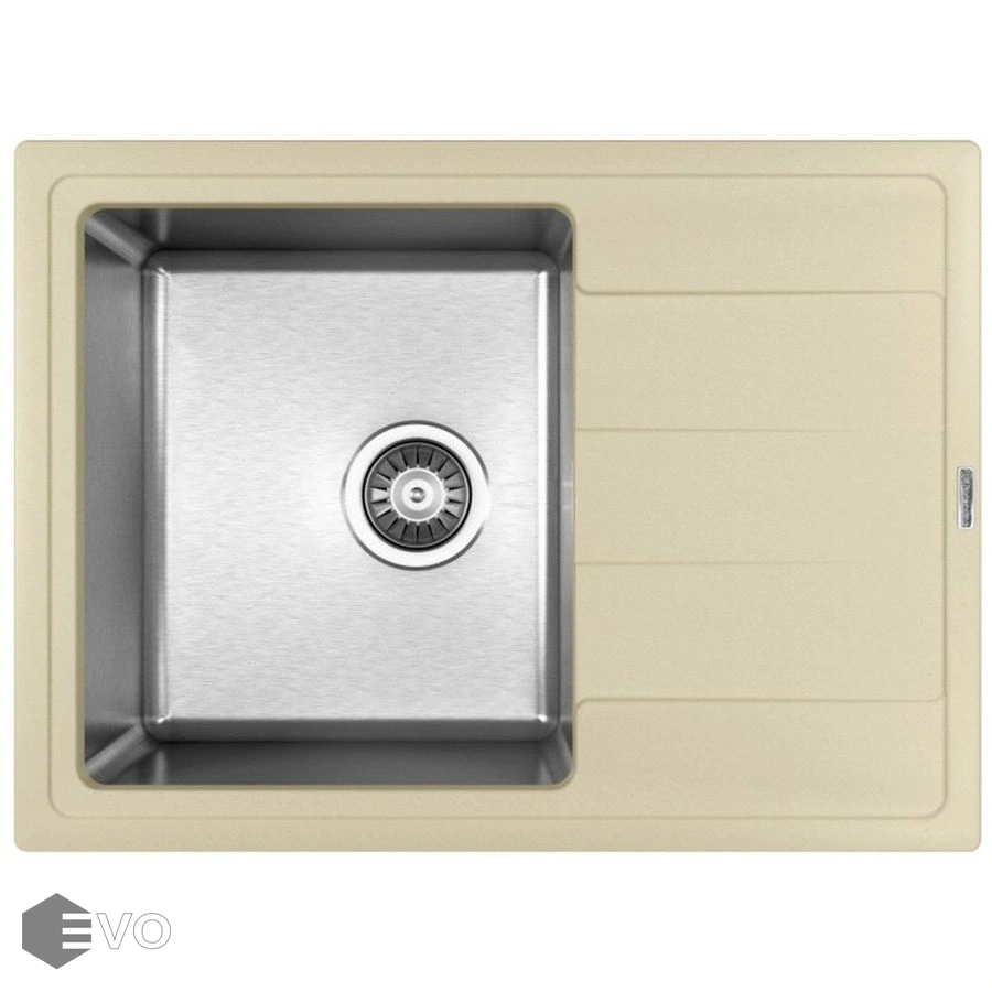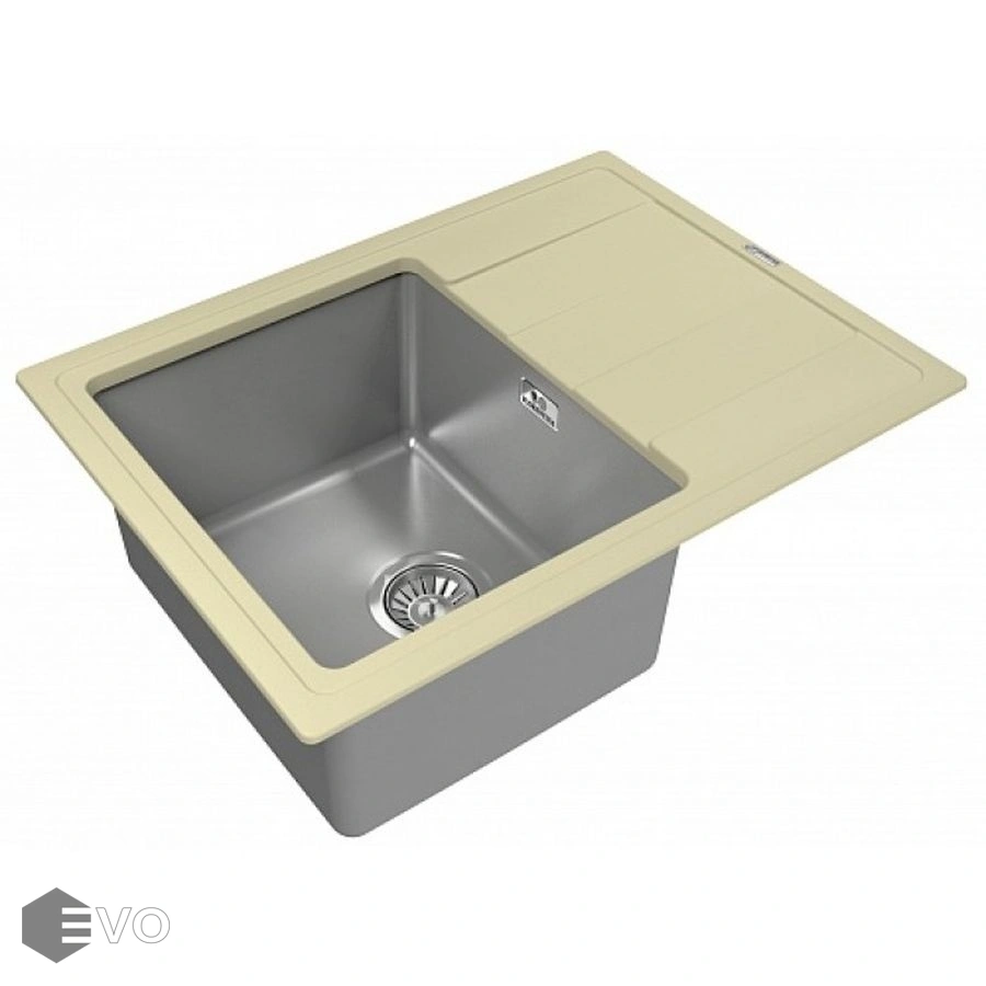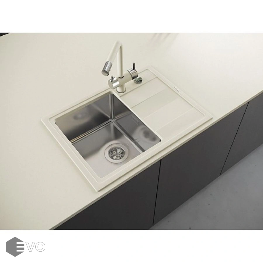 Комбинированная врезная мойка для кухни Флорентина модель Комби 650 выполнена из искусственного камня и нержавеющей стали (1 мм). Крыло и окантовка сделаны из камня, а чаша - из нержавеющей стали.