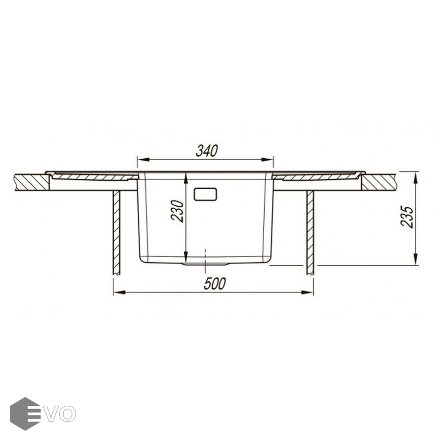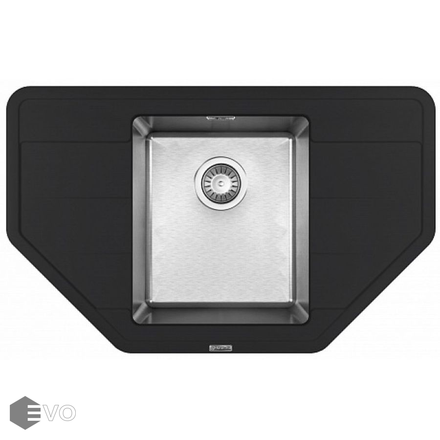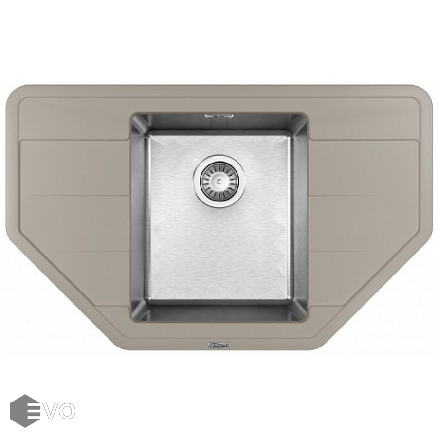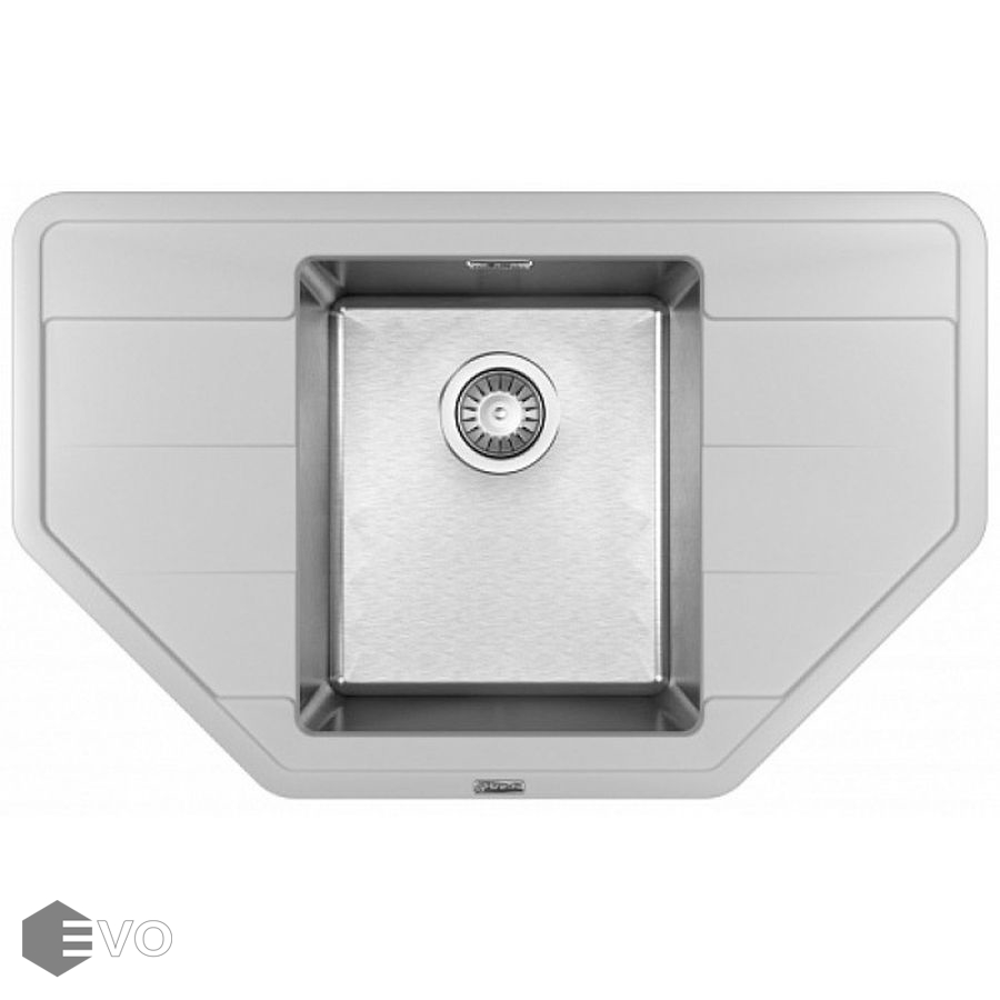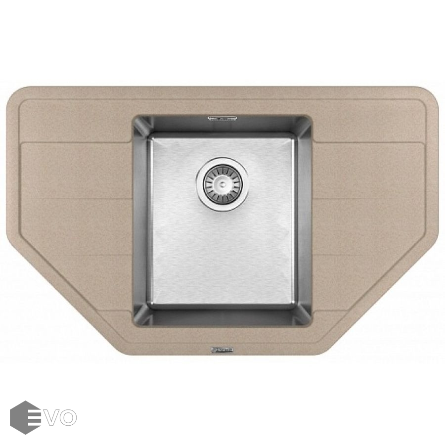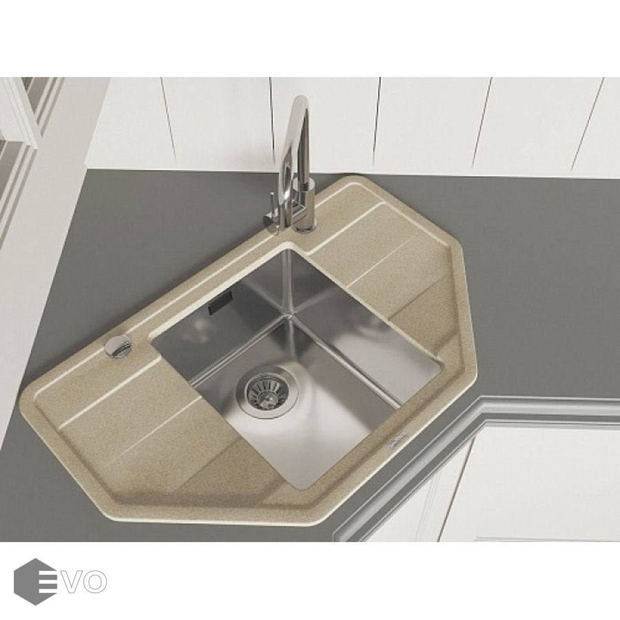 Чаша выполнена из нержавеющей стали марки AISI 304, толщина металла 1 мм, материал столешницы искусственный камень (композитный материал). Подойдет для небольших угловых кухонь, размер шкафа для встраивания 50 сантиметров.