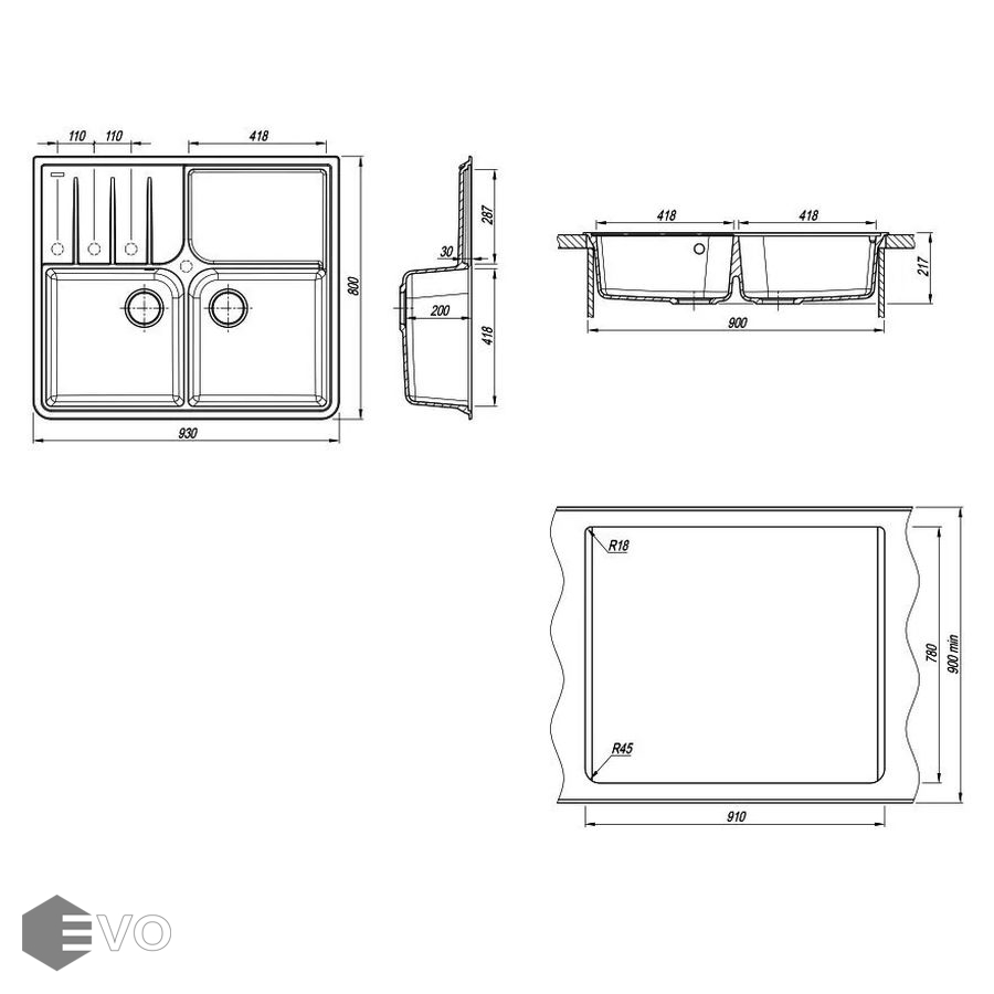 - Мойка кухонная 930х800х217 мм Florentina Остров