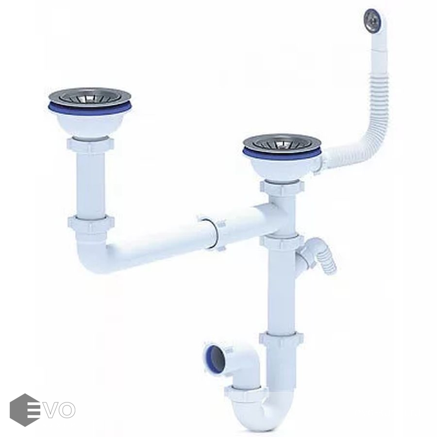 - Отводная арматура с выпуском для двух одноуровневых чаш 3 1/2 ” (D=90 мм) с переливом
