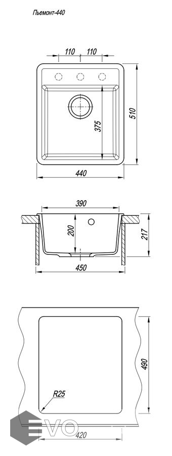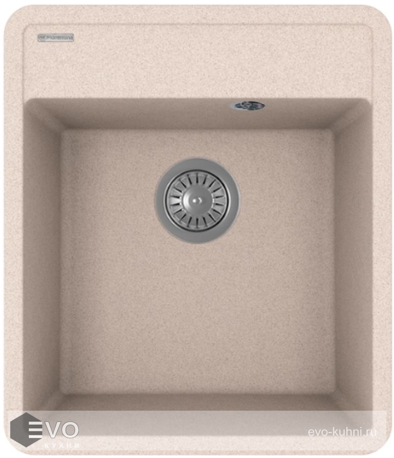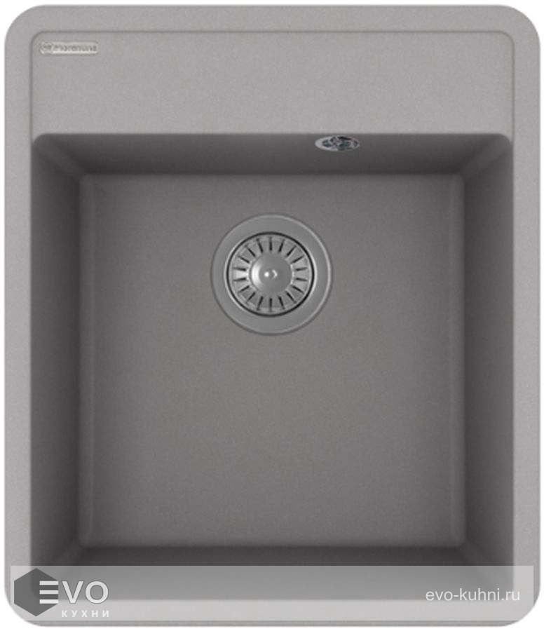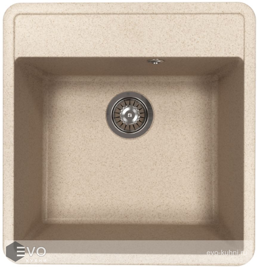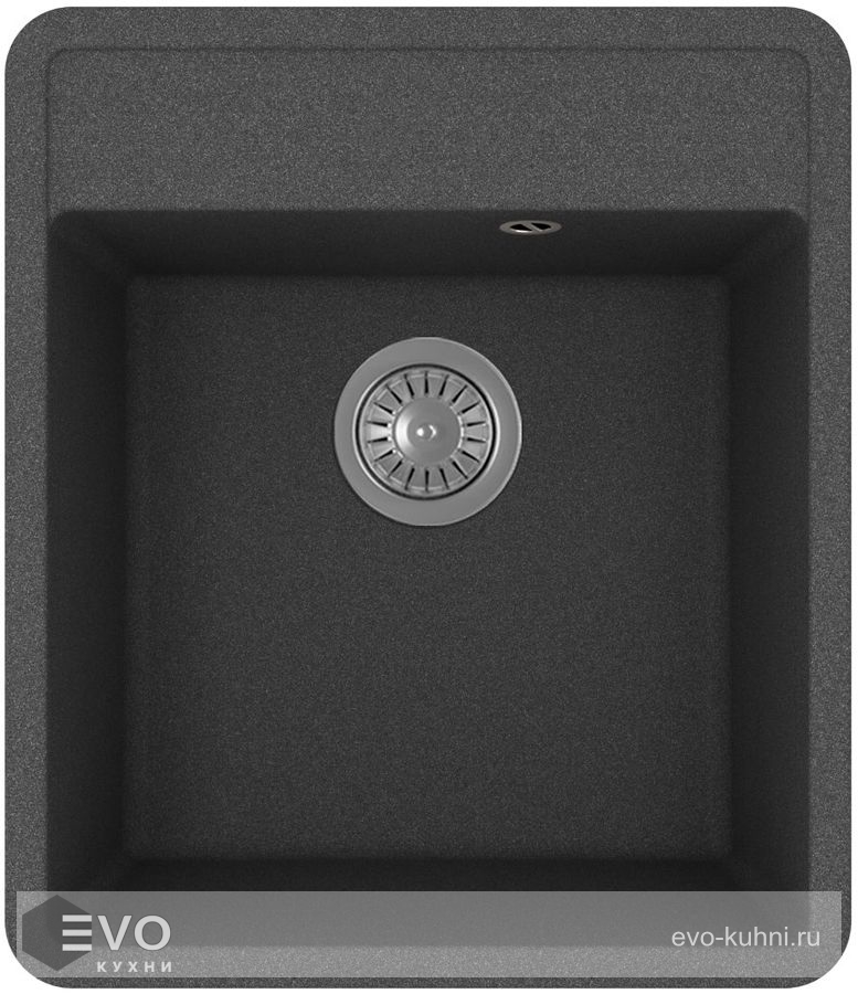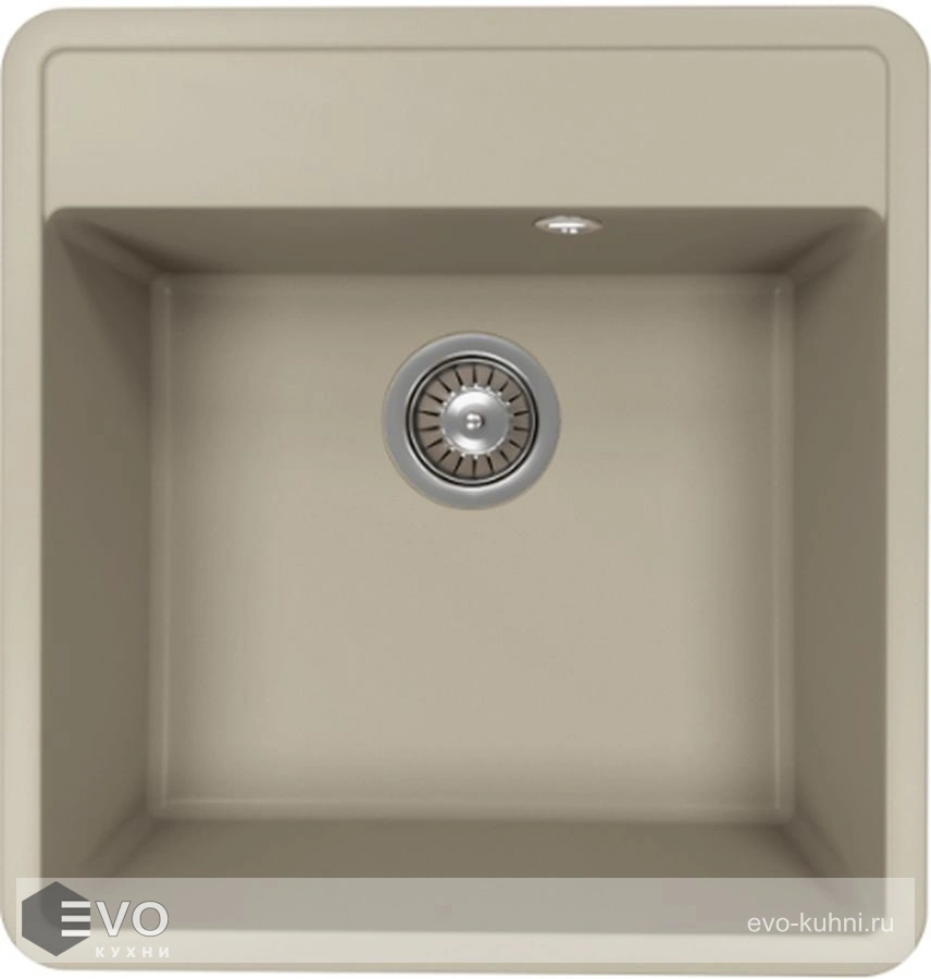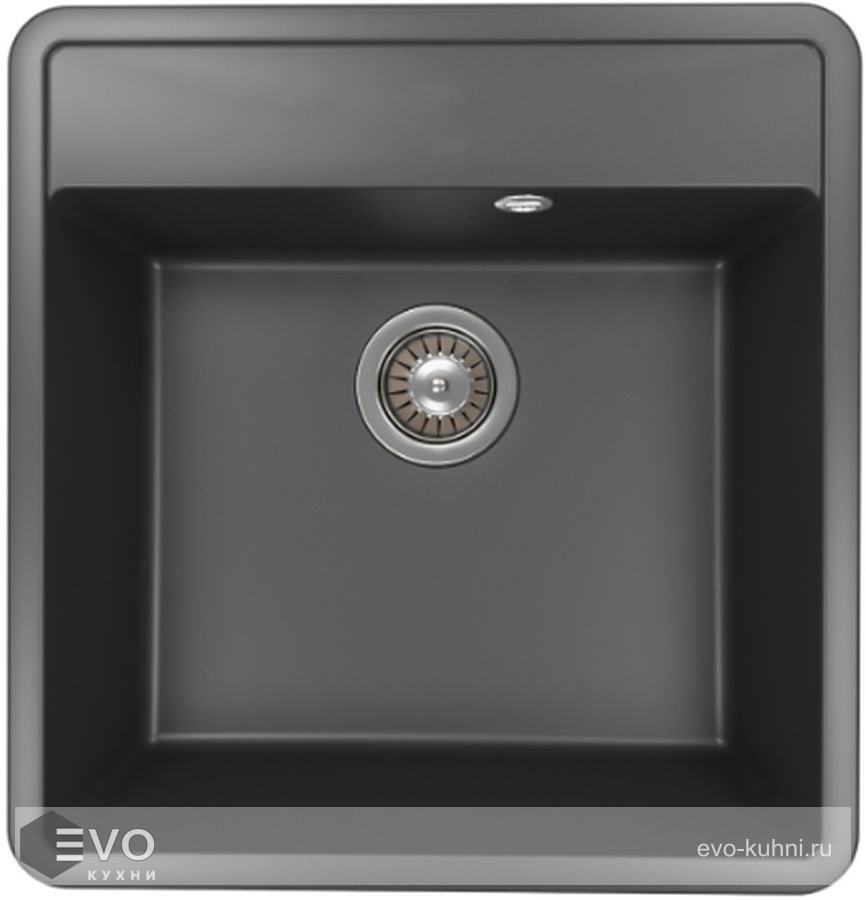 Квадратная мойка с большой чашей для кухонного шкафа 45 см. Предусмотрены отверстия для установки аксессуаров.