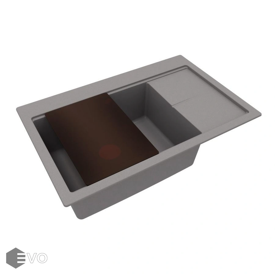 Стильная и современная мойка с разделочной доской из антивандального стекла. Доска легко передвигается по внешней длине мойки и создает дополнительную рабочую поверхность