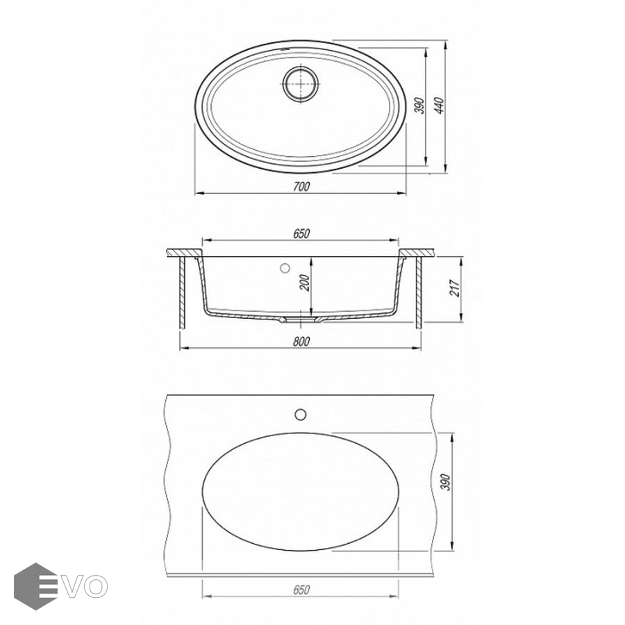 Мойка классическая овальной формы для кухни подстольного монтажа Florentina Вега Овал изготовлена из композитного материала.