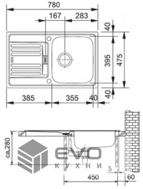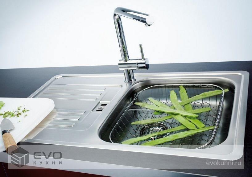 Компактная кухонная раковина Franke Euroform EFN 614-78 из матовой стали для установки поверх столешницы. Прямоугольная мойка оснащена вместительной чашей с изящными округлыми очертаниями и рельефным крылом с дополнительной зоной слива.