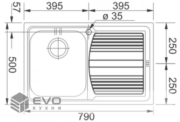 Мойка Franke LOGICA LLX 611 чаша справа, выпуск 3,5 (Пполированная)