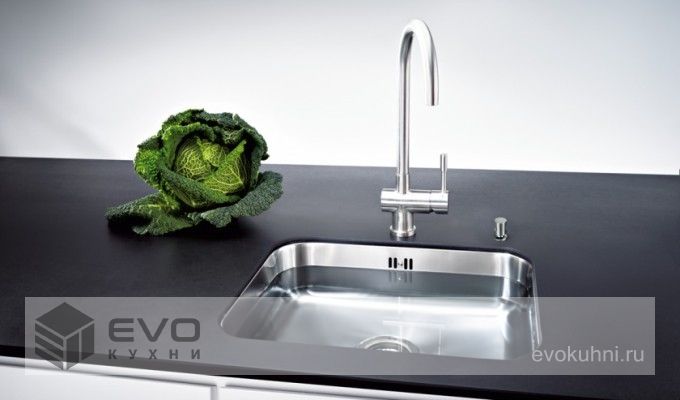 Мойки Franke производятся из нержавеющей стали самого высокого качества марки AISI 304. Такая сталь содержит 18 % хрома и 10 % никеля, а значит она будет служить десятилетиями, не поддаваясь ржавчине и старению. Нержавеющая сталь - универсальный материал, который идеально сочетается с любым стилем и цветом кухни. Этот материал уникально сочетает в себе полный комплекс характеристик, необходимых на кухне: Стойкость к коррозии: при взаимодействии с кислородом воздуха на поверхности стали образуется пассивный самовосстанавливаемый защитный слой. Жаропрочность: сталь плавится при 1450°С и ей не страшны перепады температур. Горячие сковороды и кастрюли не оставляют на ней никаких следов. Эластичность: сталь тянется более чем на 50 %, что позволяет производить мойки различной формы. Гигиеничность: поверхность абсолютно гладкая и не имеет пор - на ней не образуются бактериальные загрязнения и она легко моется. Долговечность: износостойкость нержавеющей стали не превосходит никакой другой материал.